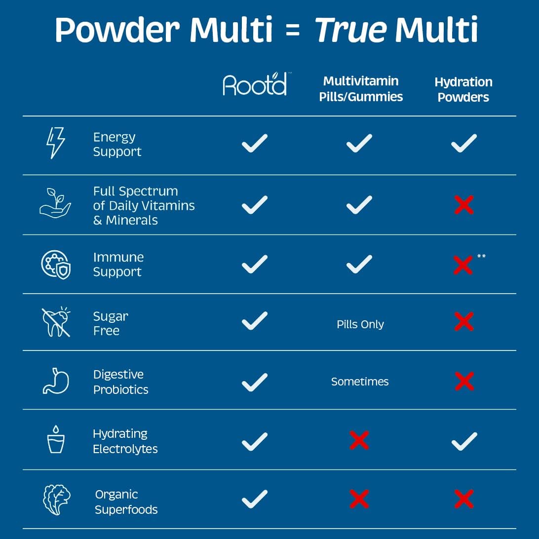 Root'D Multivitamin Powder For Men - 24 Vitamins & Minerals With 3X Electrolytes, 9 Organic Superfoods, Probiotics & Enzymes, Sugar-Free Multivitamin & Hydration | 24 Vitamin Drink Mix Packets