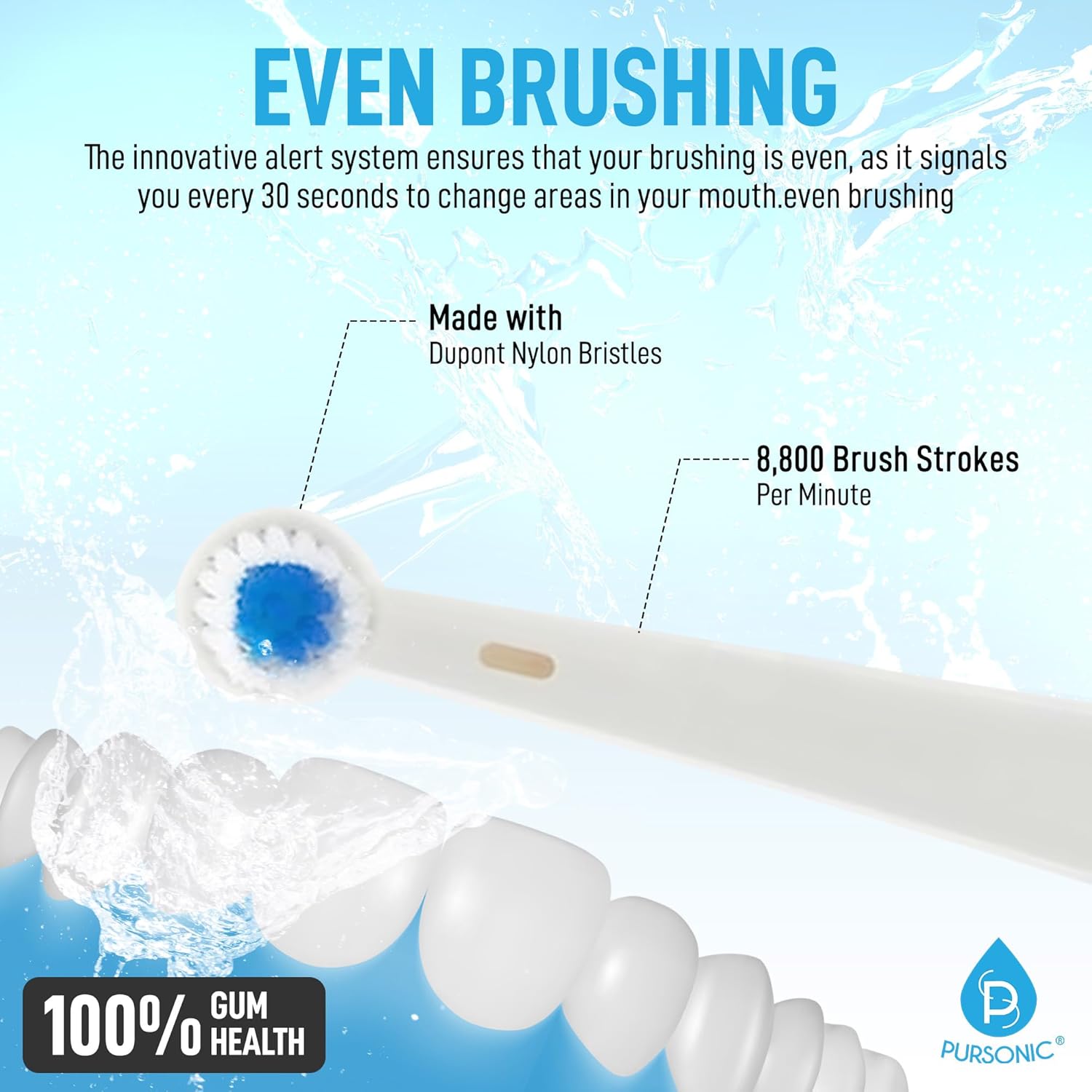 Deep Cleaning - The Pursonic Toothbrush has specially designed bristles that vibrate rapidly to remove up to 7x more plaque than a manual toothbrush, giving you a deep clean. Enjoy improved oral hygiene with this rechargeable electric toothbrush