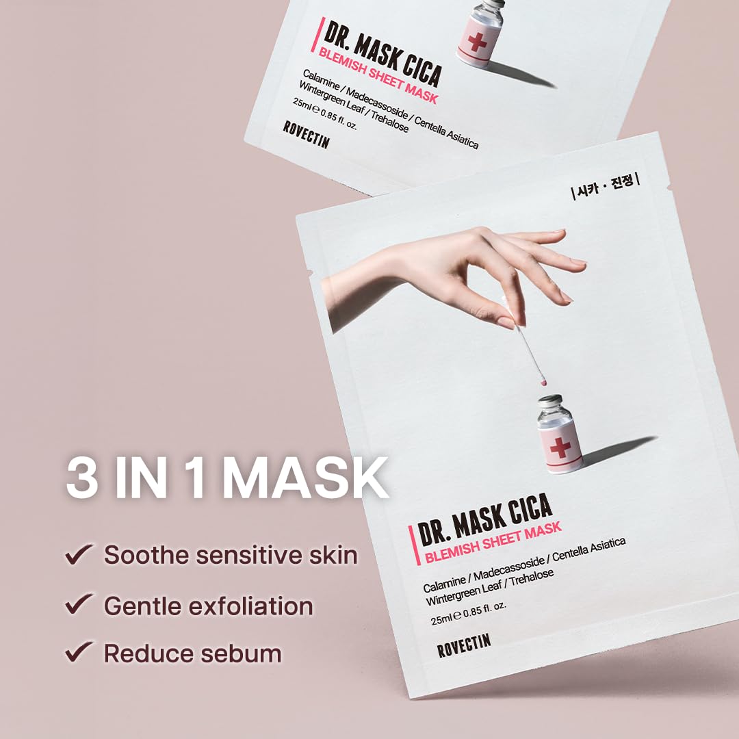 Rovectin Dr. Mask Cica (5 Ea.) - Soothing And Hydrating Facial Mask Sheet With Calamine And Madecassoside