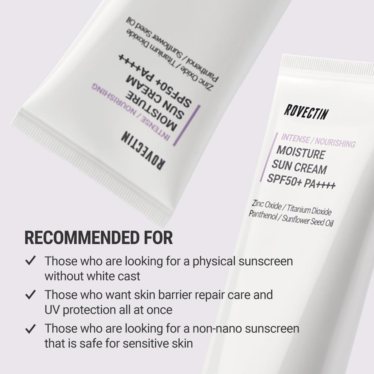 Rovectin Intense Moisture Sun Cream: Deep Moisturize, Mineral Sunscreen, Uv Protector | Panthenol And Tocopherol For Dry, Combination Skin | Vegan Korean Skincare (1.69 Fl.Oz, 50Ml)
