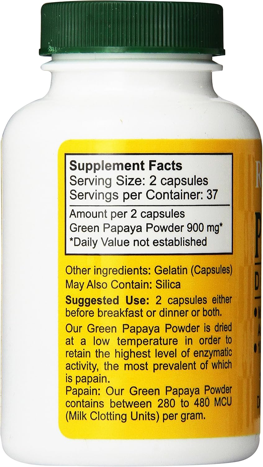 Royal Tropics The Original Green Papaya Digestive Aid Capsules, 75 Count