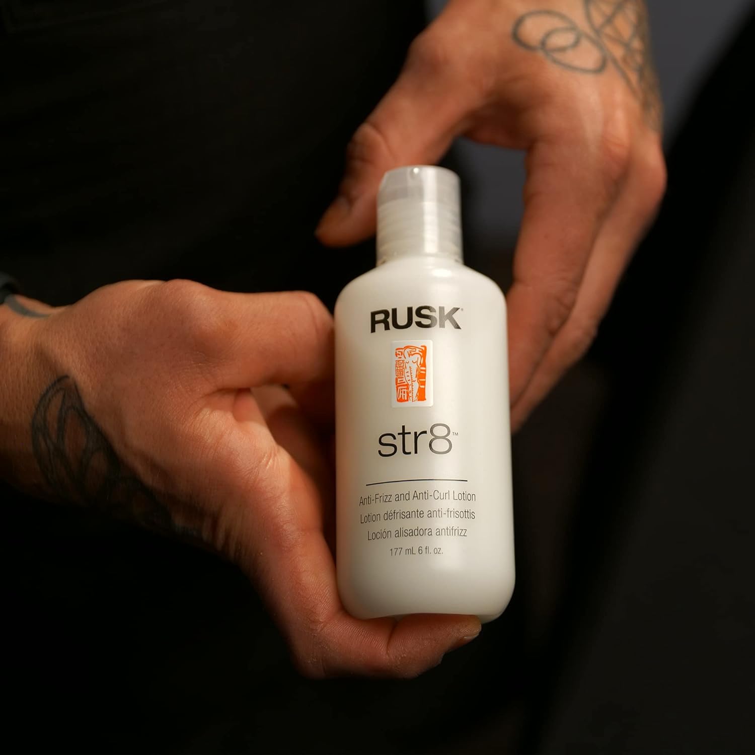 Rusk Designer Collection Str8 Anti-Frizz And Anti-Curl Lotion, Light, Greaseless, Temporarily Removes Curl And Eliminates Frizz, White 6 Oz