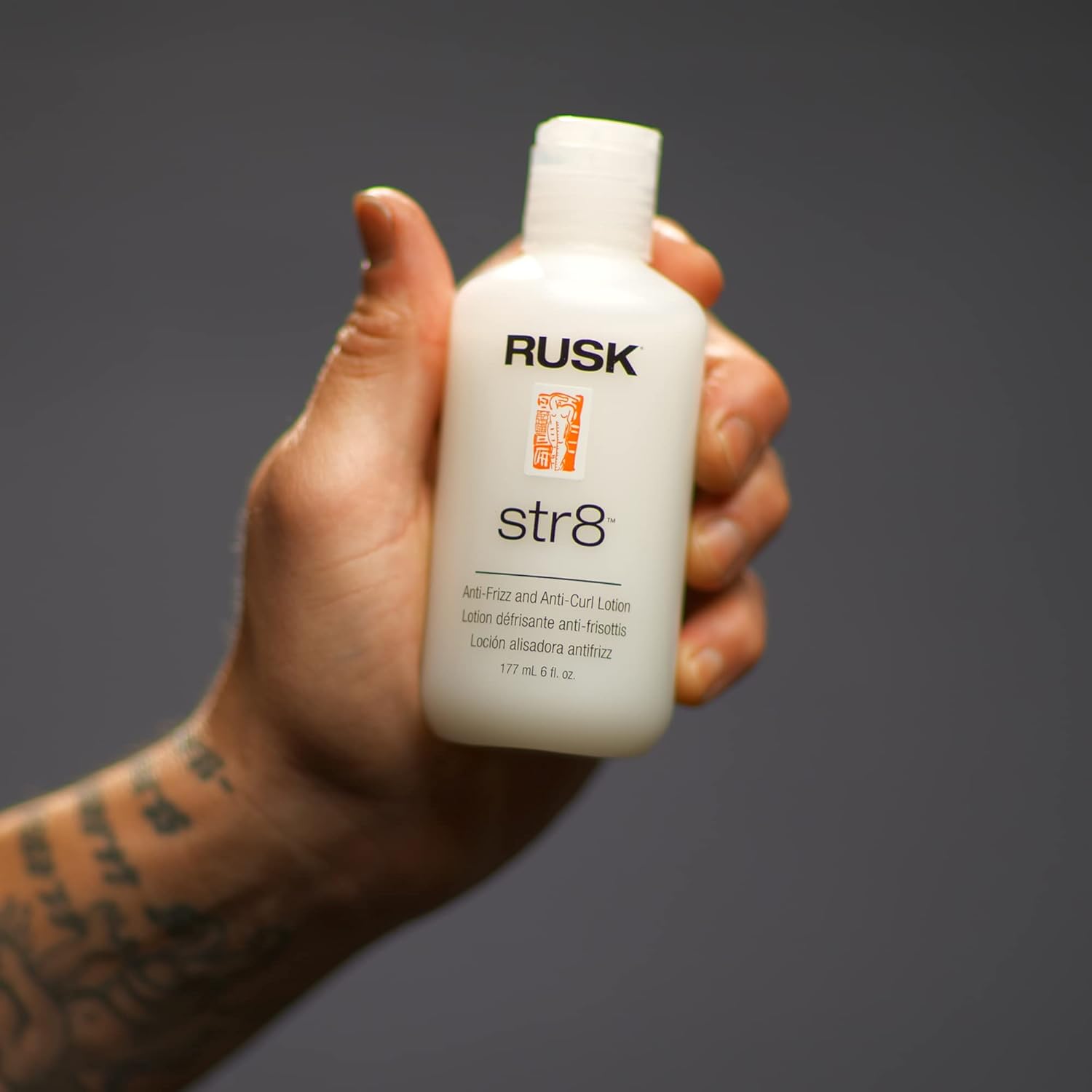 RUSK Designer Collection Str8 Anti-Frizz and Anti-Curl Lotion, Light, Greaseless, Temporarily Removes Curl and Eliminates Frizz, White 6 oz