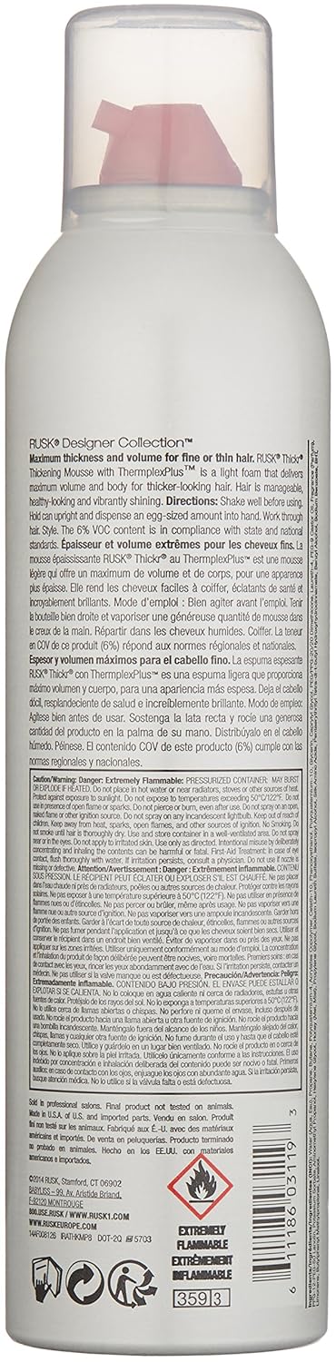 Rusk Designer Collection Thicker Thickening Mousse For Fine Or Thin Hair, 8.8 Oz, Thickening Mousse That Provides Body, Texture, And Hold Without Buildup