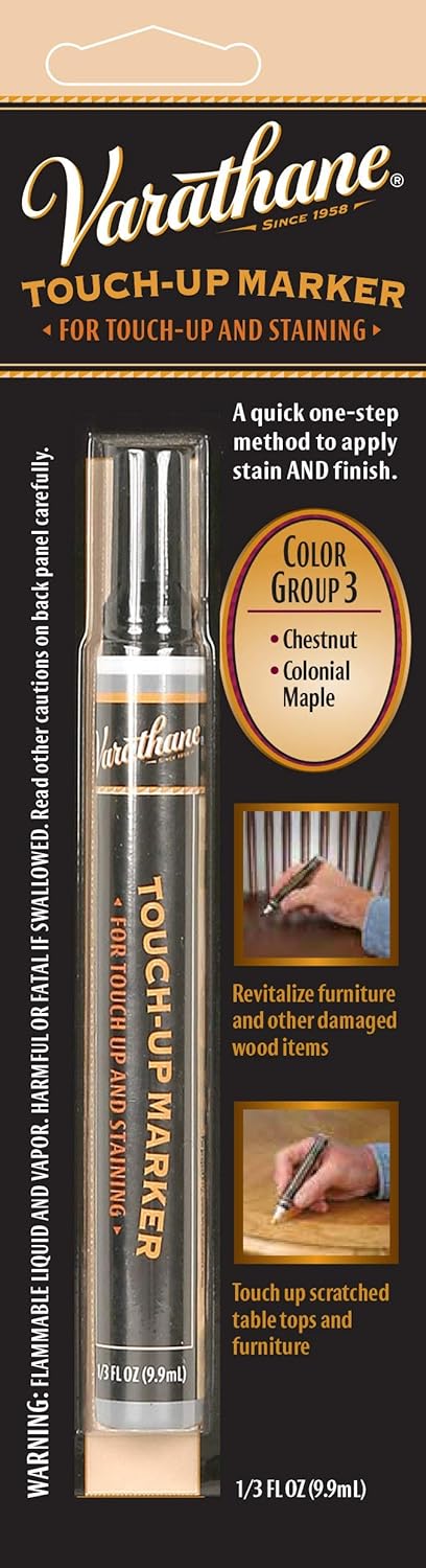 Great way to repair minor scratches and blemishes on wood stained furniture, cabinets, moldings, floors and more10Quick, easy-to-use, one-step method to apply and finish10Dries to the touch in as little as 30 minutes allowing for quick fixes10Convenient felt-tip allows for quick precision staining in hard-to-reach areas10Color group assortment provides excellent matching of Varathane Wood Stains