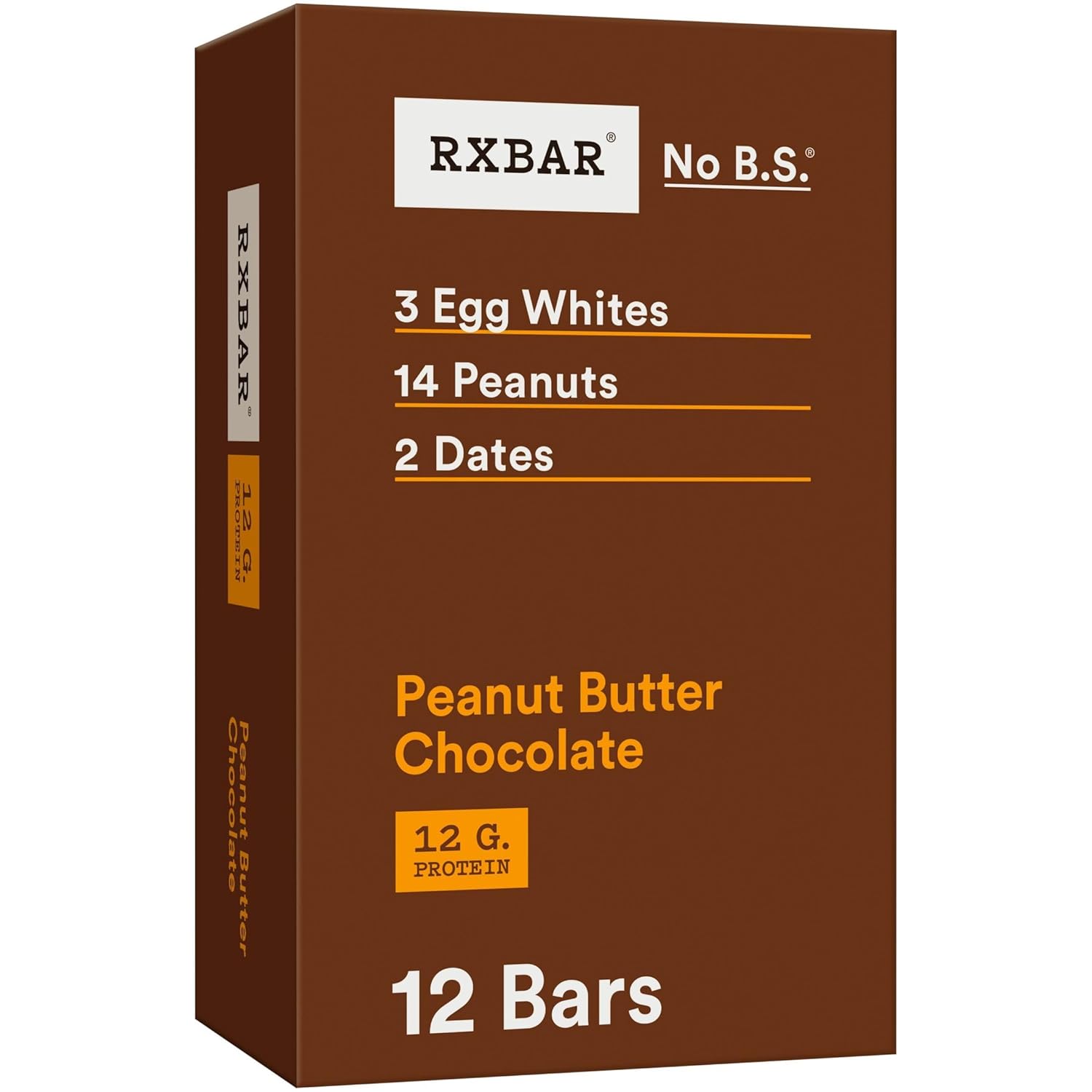 Rxbar Protein Bars, Protein Snack, Snack Bars, Peanut Butter Chocolate, 22Oz Box (12 Bars)