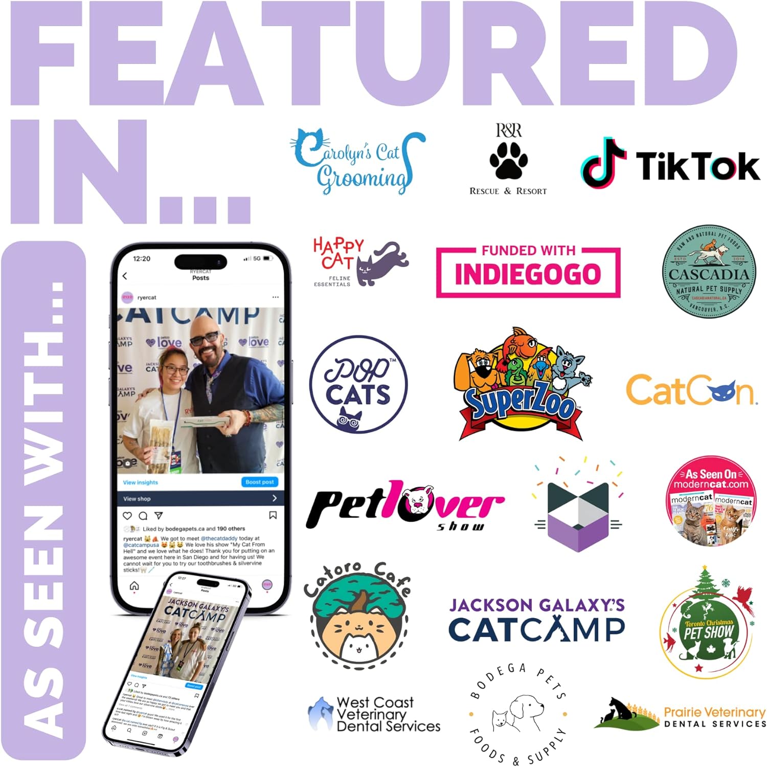 RYERCAT Cat Toothbrush Struggling to find a toothbrush small enough Don't fret! We've got you covered with the tiniest toothbrush on Amazon, meticulously designed for your kitty's oral health. No more oversized brushes meant for dogs! Plus, it works wonders for small dogs too!10Uses Dual Sided for Complete Care: Your cat's dental health matters! Our toothbrush boasts a dual-sided micro head that tackles plaque and tartar with ease. The soft bristles gently brush teeth, while the pick side nimbly removes pesky food debris. Effortless dental care for a purrfect smile! 10Uniqueness Social & Environmental Impact: We care for your cat and the planet! Our toothbrush is sourced ethically, and its eco-friendly design crafted from biodegradable cornstarch gives it a unique "matte" feel. Be a responsible pet parent and support sustainability while caring for your fur baby! 10Premium Quality Colors & Cats: Make dental care a colorful affair! Choose from 5 vibrant colours - Ocean Blue, Lavender Light Purple, Amethyst Purple, Space Blue, & Flamingo Pink. Not just aesthetics - opt for a different color for each cat to avoid sharing germs. Imagine sharing a toothbrush with your brother... Gross! 10[ Resources & Education ] Unlock the secrets of feline oral health with RYERCAT's PATENTED DESIGN and comprehensive educational resources! Our founder, a Registered Nurse in Dental Anesthesia, brings professional expertise to guide you through the learning curve of cat teeth brushing. Join millions on TikTok learning 'How to Brush your cat’s teeth' As well as recorded speaker events at Meowfest 2022. Our goal is to Redefine Feline Oral Health