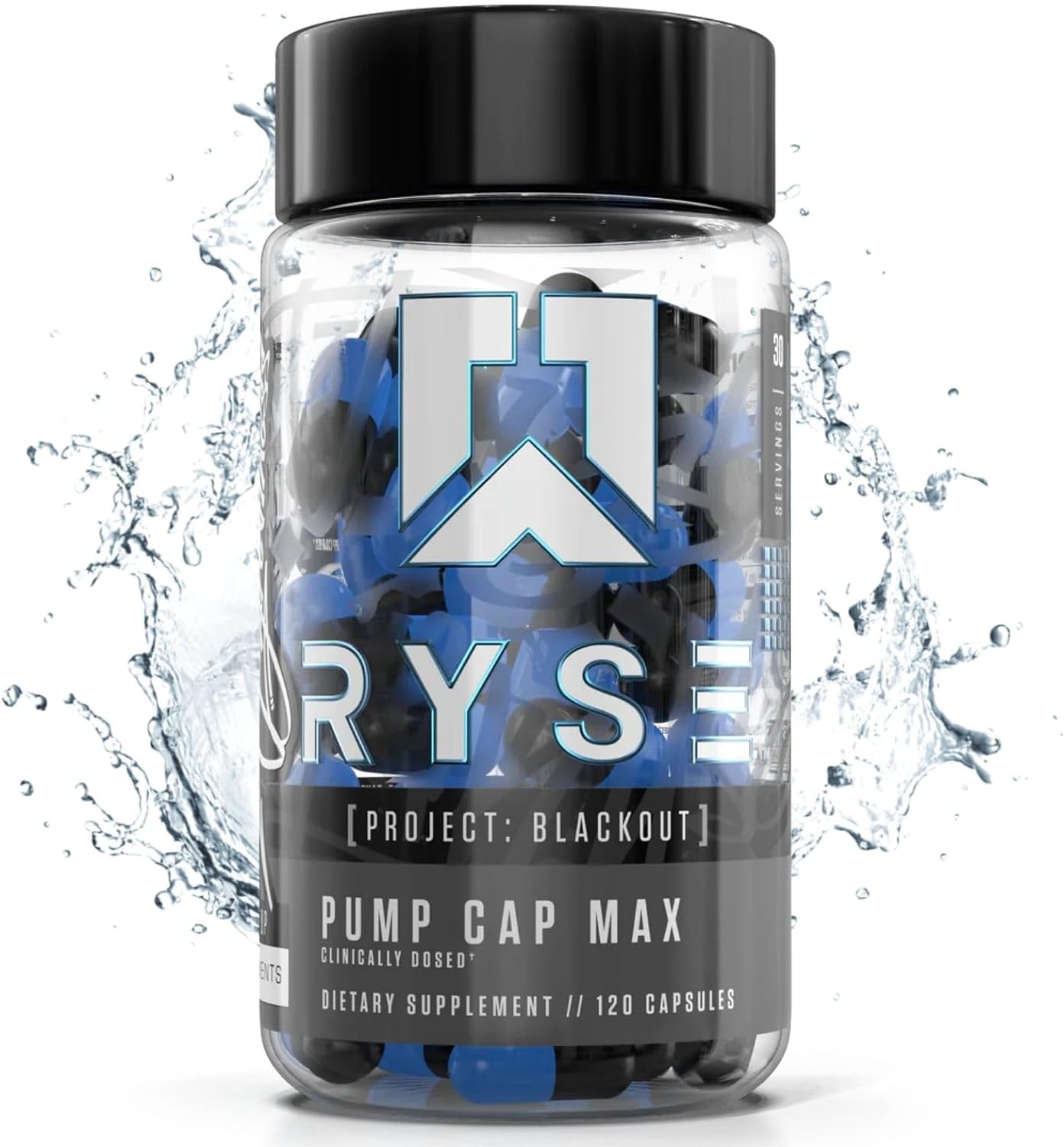 Ryse Up Supplements Project Blackout Pump Cap Max | Stimulant Free Pump Formula | Betaine Nitrates & Citrulline Peptides For Max Muscular Blood Flow | 120 Capsules