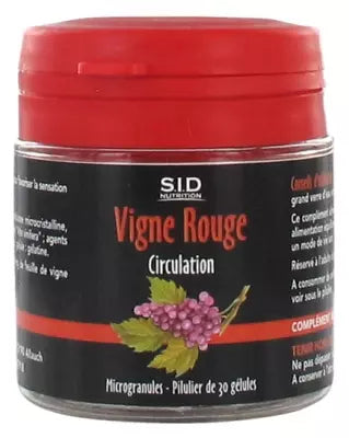 S.I.D Nutrition Circulation Red Vine 30 Capsules Is A Food Supplement Which Contributes To Ease Heavy Legs. Made In France