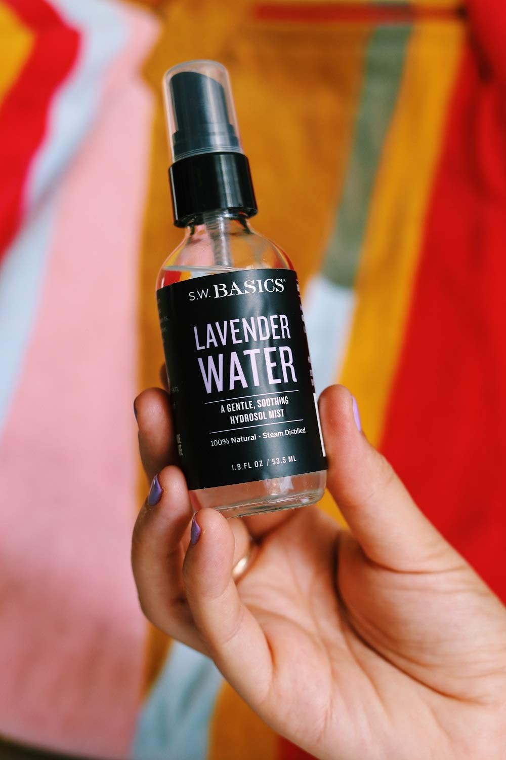 S.W. Basics Lavender Water Facial Mist, Hydrating And Toning Face Spray, Organic And Cruelty Free, 1.8 Fl Oz