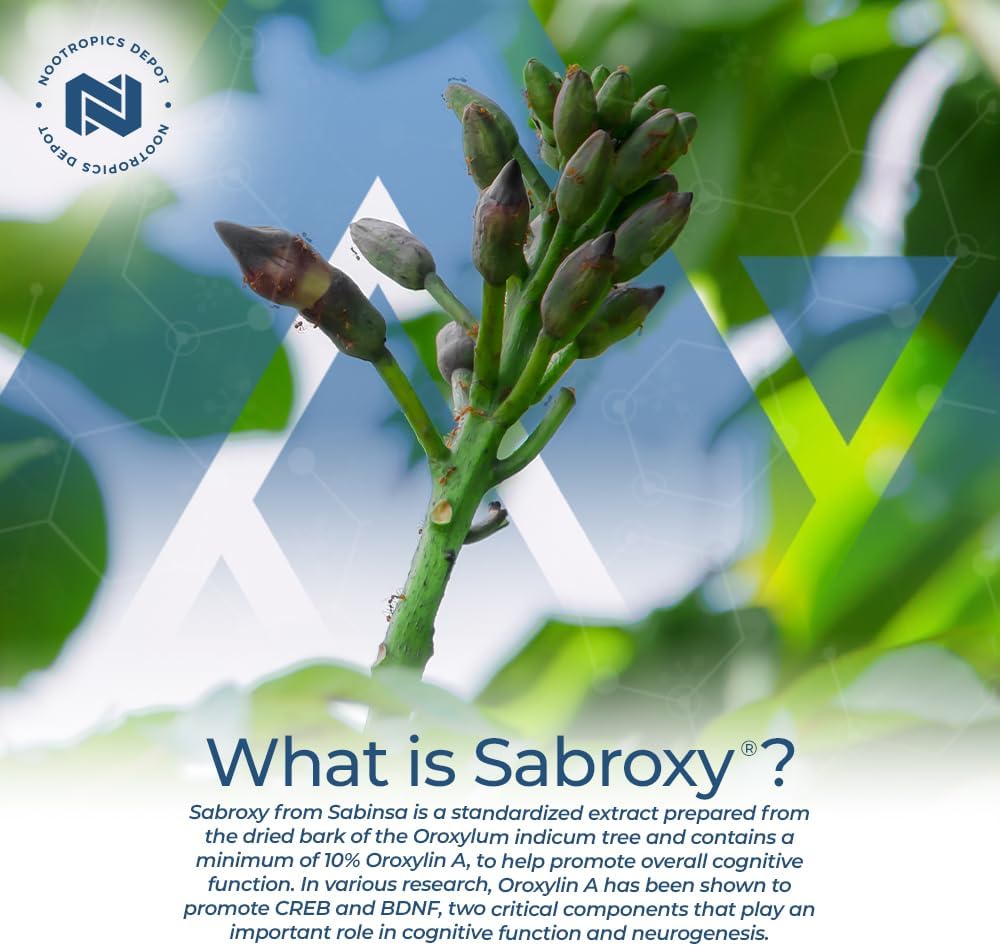 4 > STANDARDIZED TO 10% OROXYLIN A - Nootropics Depot's Sabroxy is standardized to one of the main bioactive compounds found in the Scutellaria baicalensis plants, Oroxylin A. This specific compound is what makes Sabroxy so popular and sought after and it is what we use to measure and standardize our product