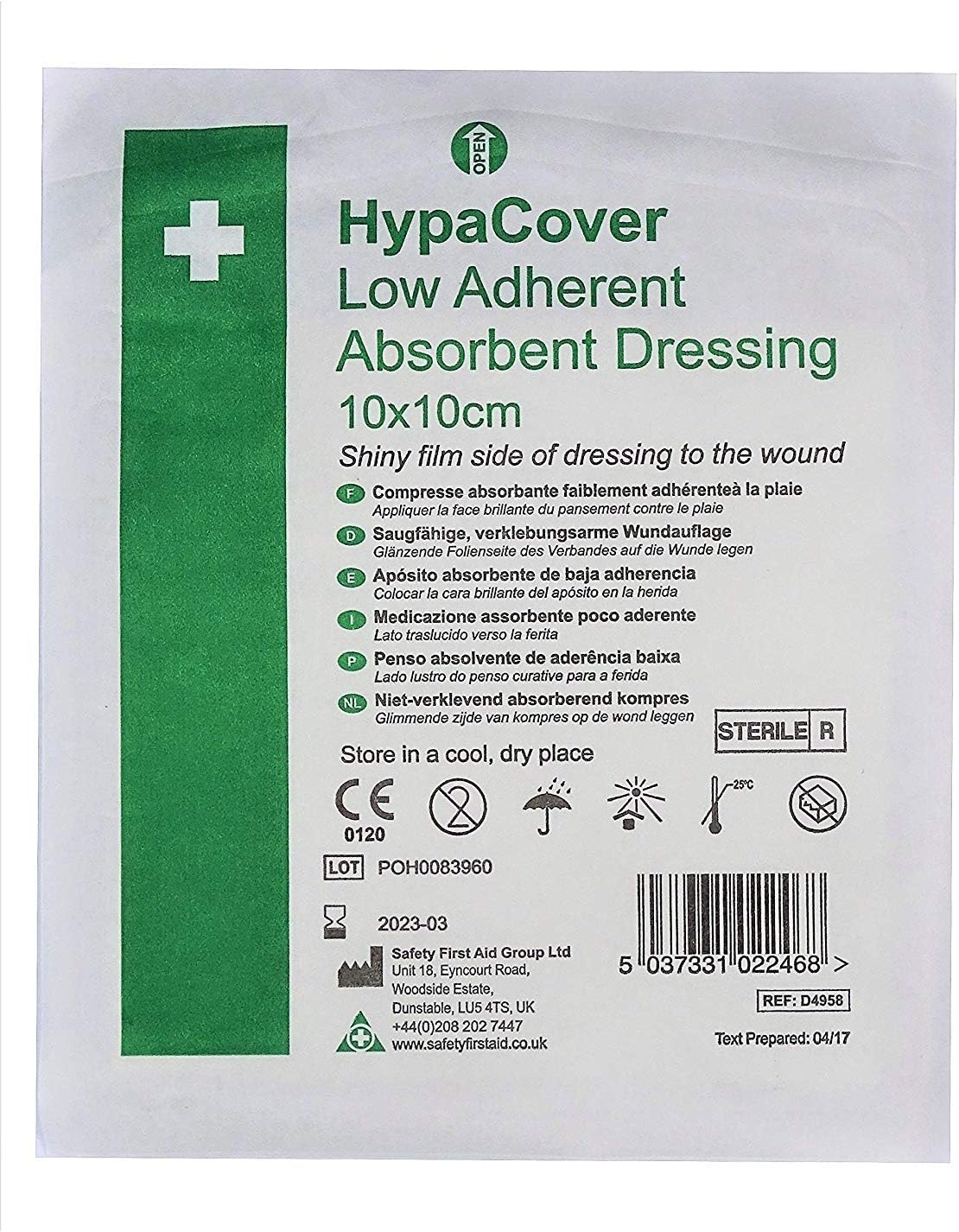 Safety First Aid Group Group Hypacover Low Adherent Dressing Pads For Wounds Absorbent Dressing, 10X10Cm (Pack Of 25)