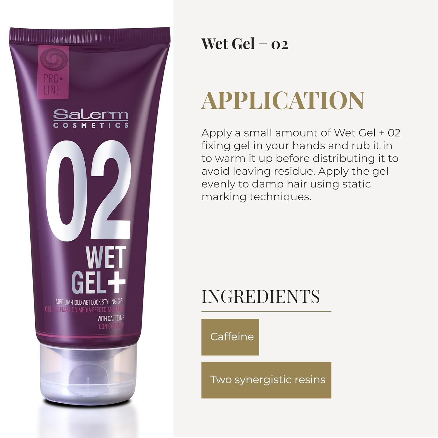 HAIR STYLING GEL: The Wet Gel + 02 styling gel offers medium and flexible hold for a wet-look style without leaving residue. Its advanced formula with synergistic resins guarantees long-lasting hold without compromising hairstyle flexibility