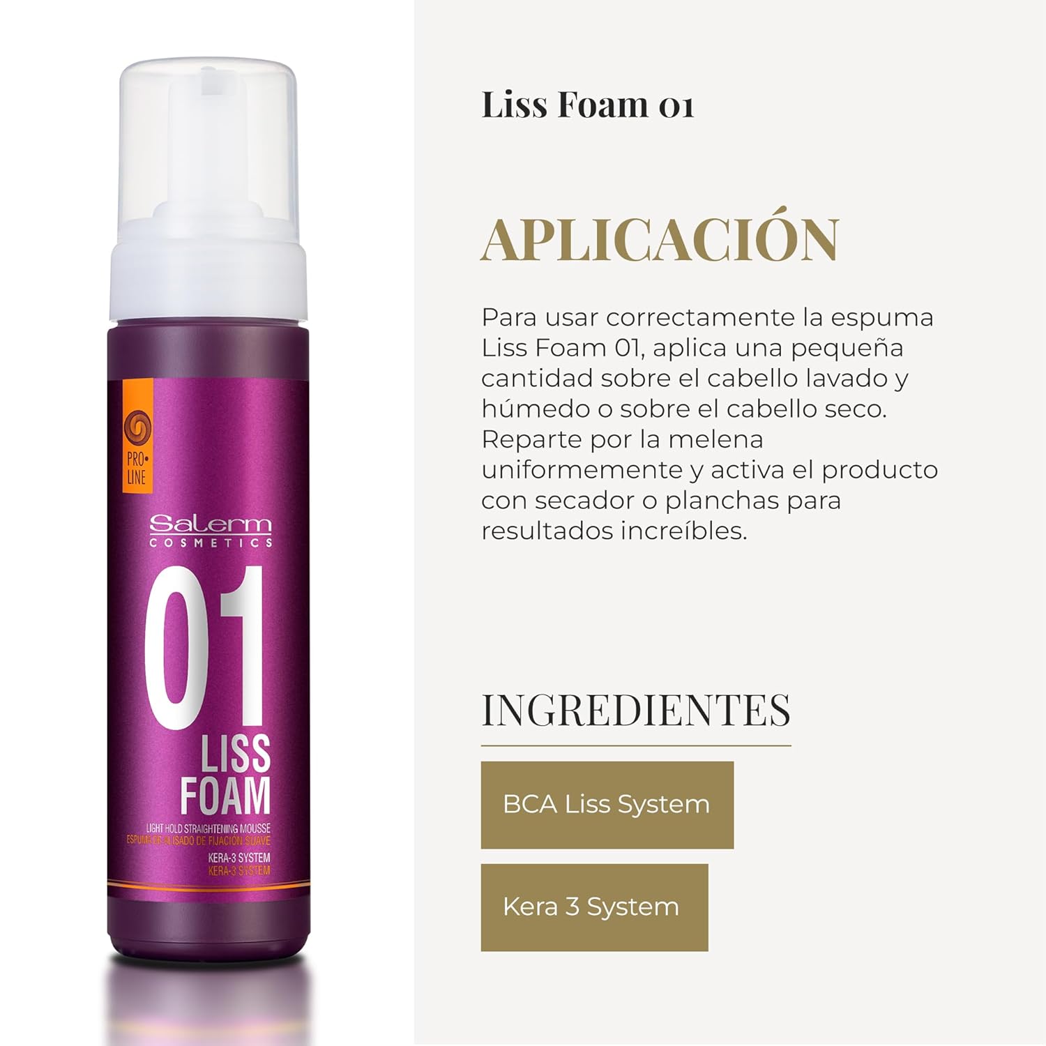 Salerm - Straight Hair Foam - Pro Line Liss Foam 01-200 Ml - Eases And Improves Straightening Results - Anti-Frizz - Light Hold - Heat Protector - Treats And Repairs Hair