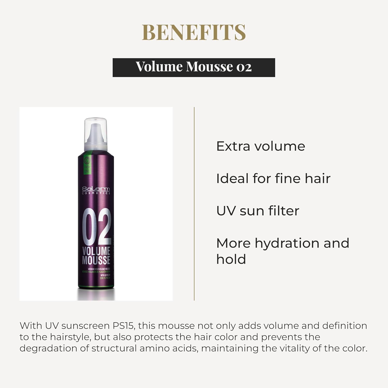 VOLUME MOUSSE FOR HAIR: The Volume Mousse 02 is designed to provide extra volume to fine hair. Its formula with hyaluronic acid improves elasticity and internal hair hydration, combating signs of hair aging