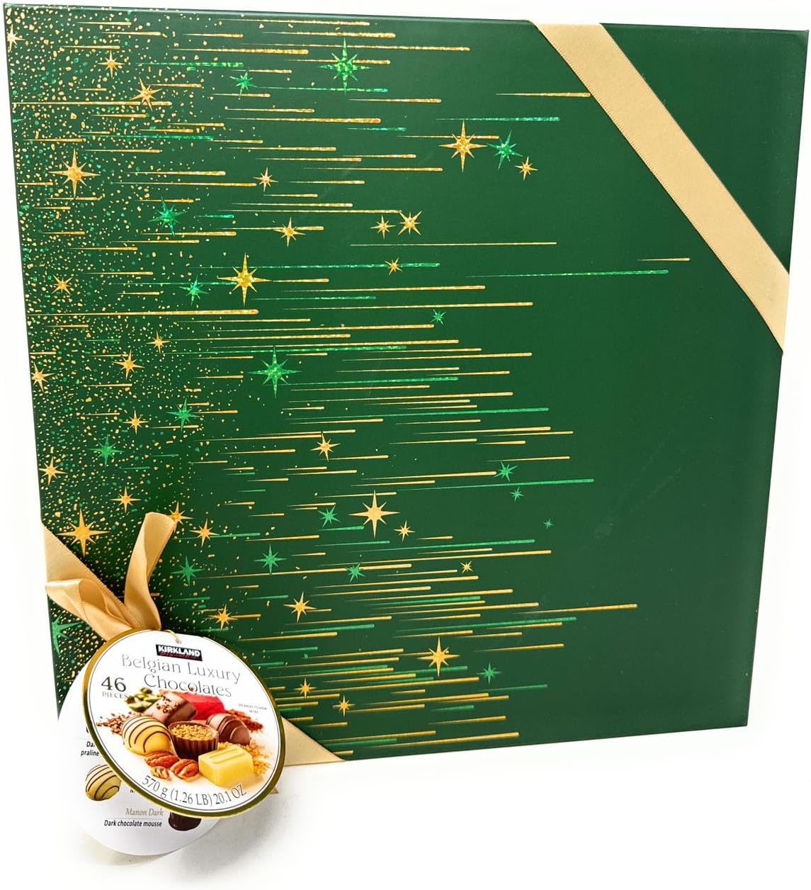 About this item 46 Pieces of Exquisite Belgian Chocolates Kirkland Signature Luxury Belgian Chocolates in 3 Colours, 570g with gold Ribbon Net Weight: - 570g/26.3 Oz - Imported from Belgium Number Of Items: 1 › See more product details,46 Pieces of Exquisite Belgian Chocolates,Kirkland Signature Luxury Belgian Chocolates in 3 Colours, 570g with gold Ribbon,Net Weight: - 570g/26.3 Oz - Imported from Belgium,Number Of Items: 1