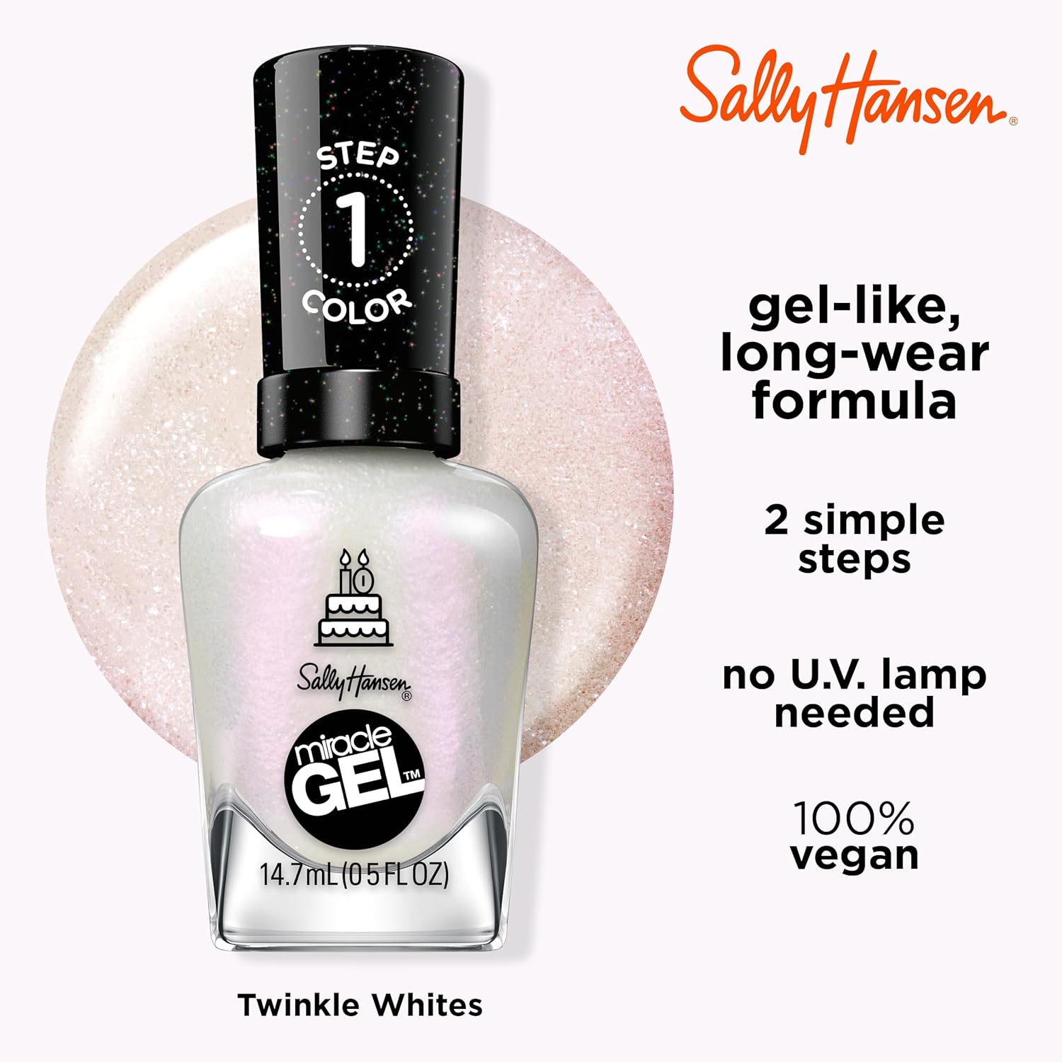 Sally Hansen Miracle Gel™, One Gel of a Party Twinkle Whites, Long Lasting, Gel-Like Formula, No UV Lamp Needed, White Nail Polish : Beauty & Personal Care