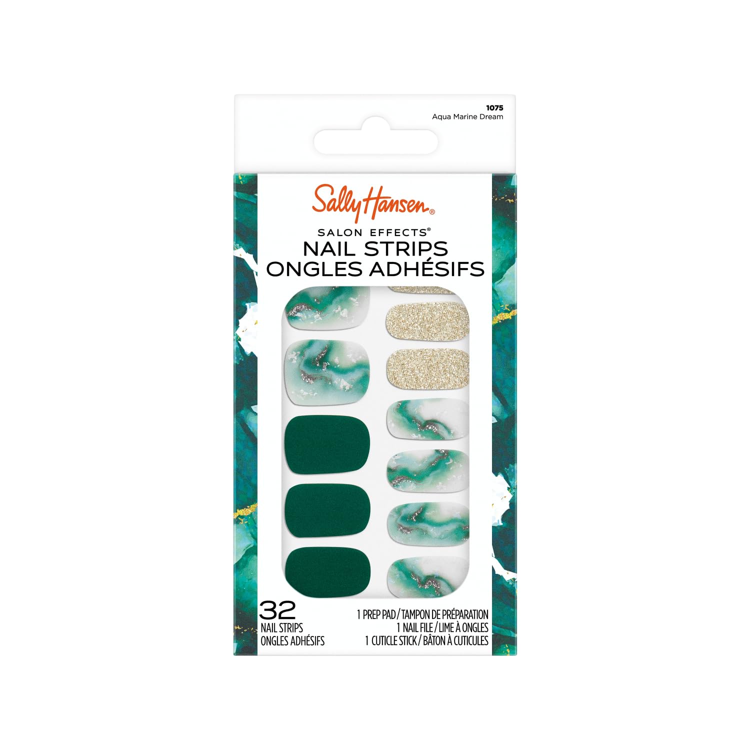 Sally Hansen Salon Effects, Aqua Marine Dream?, Nail Strips, No Uv Light Needed, No Dry Time, Long-Lasting, Non-Damaging, No Chipping