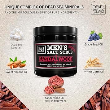 Best body exfoliator - exfoliating with body scrub with Sandalwood can improve the texture, tone and appearance of your skin, helps reduce the appearance of cellulite, wrinkles, fine lines, stretch marks, scars and can be used as an exfoliating foot scrub. Using a salt scrub is known to increase circulation, assist in the rejuvenation of your cells!
