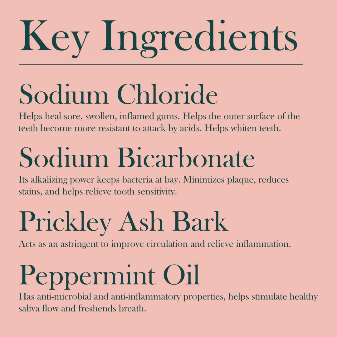 About this item All Natural Tooth Powder Stimulates the Gums Cleans Teeth, Freshens Breath Combination of Salt, Soda and Prickly Ash Bark Refreshing Taste › See more product details,All Natural Tooth Powder,Stimulates the Gums,Cleans Teeth, Freshens Breath,Combination of Salt, Soda and Prickly Ash Bark,Refreshing Taste