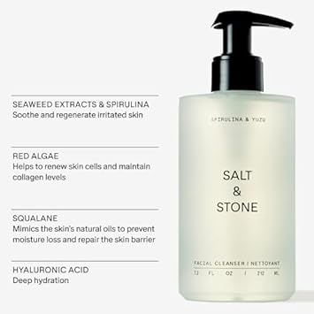 Salt & Stone Facial Cleanser For Women & Men, Spirulina & Yuzu Gentle Facial Wash With Hyaluronic Acid, Squalane, For All Skin Types, Vegan, Cruelty Free, 7.2 Oz