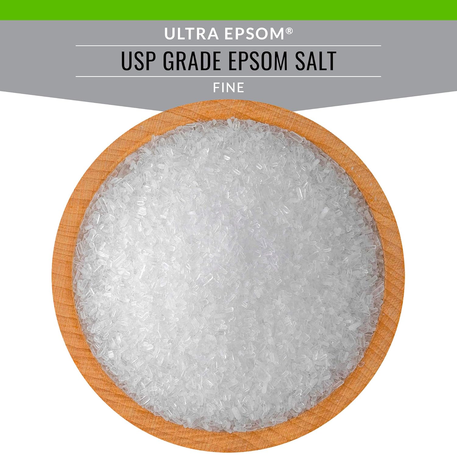 Ultra Epsom Salt is the highest quality, pharmaceutical grade Epsom salt available. Ultra Epsom Salt brand of magnesium sulfate, exclusively from SaltWorks, is known for its exceptional purity and therapeutic value. It dissolves easily, perfect for soothing sore muscles, relaxing soaks, and calming foot baths. Create body scrubs, bath salts and much more with the new range of grain sizes available. Add Ultra Epsom Salt to your garden for lush, green lawns, roses and vegetables. Ultra Epsom Salt is affordably priced and offered in bulk in several unique grain sizes for multi-purpose use. Fine Grain: Ideal in bath salt and salt scrub recipes, Ultra Epsom Salt in Fine grain is also good to use in bathing, gardening and as a sore muscle soak,EXCEPTIONAL PURITY AND THERAPEUTIC VALUE; Ultra Epsom Salt is the highest quality pharmaceutical (USP) grade Magnesium Sulfate available,BENEFITS INCLUDE relaxing the nervous system, curing skin problems, soothing back pain and aching limbs, easing muscle strain, healing cuts, treating colds and congestion, drawing toxins from the body,Ideal in bath salt and gentle salt scrub recipes, bath bombs. bathing, Organic gardening and as a sore muscle soak,DISSOLVES WITH EASE for quick and efficient use,KOSHER CERTIFIED, Allergen and cruelty-free and devoid of genetically modified organisms (GMOs)
