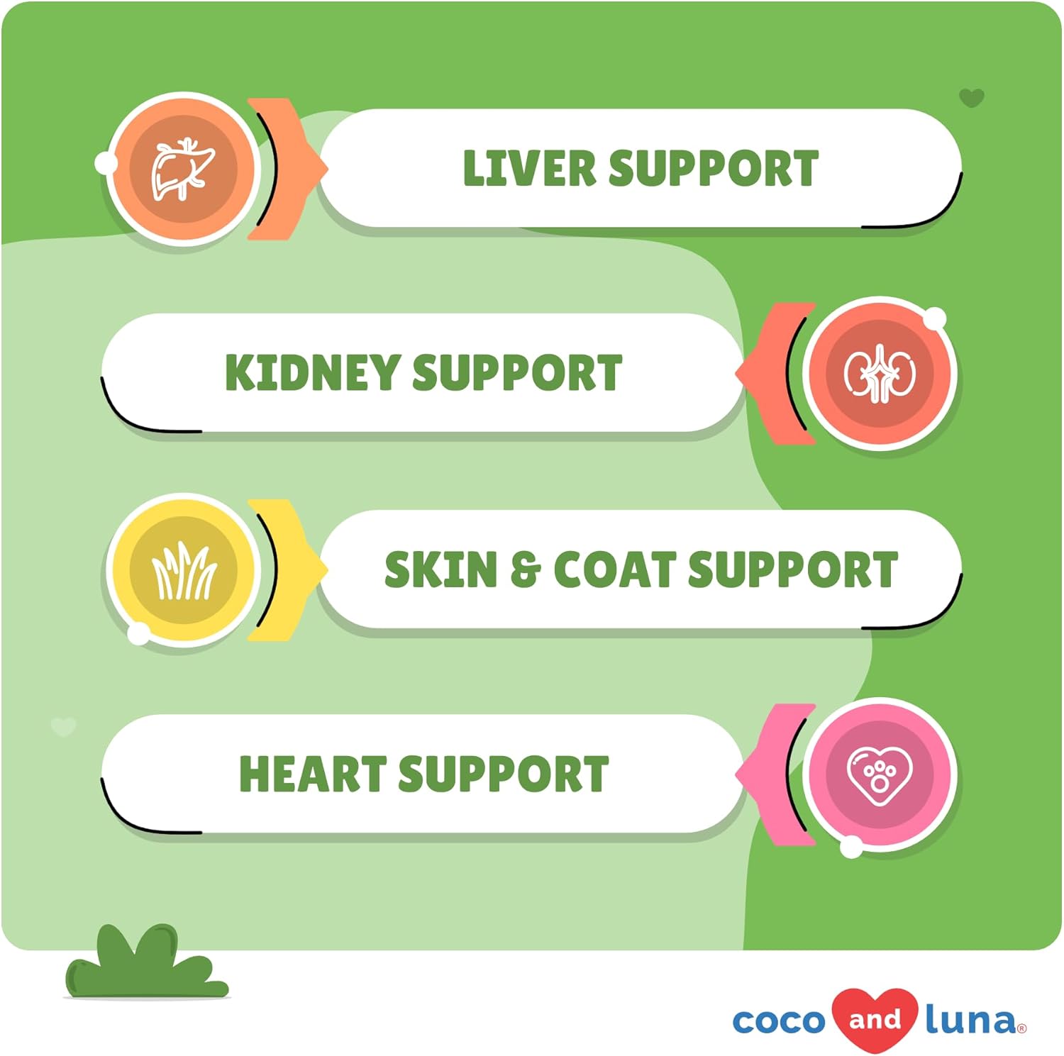 Organic Milk Thistle for Dogs - Coco and Luna Liver and Kidney Support contains Milk Thistle which is a safe and powerful ingredient that provides liver support for dogs by eliminating toxins and working as a natural dog detox