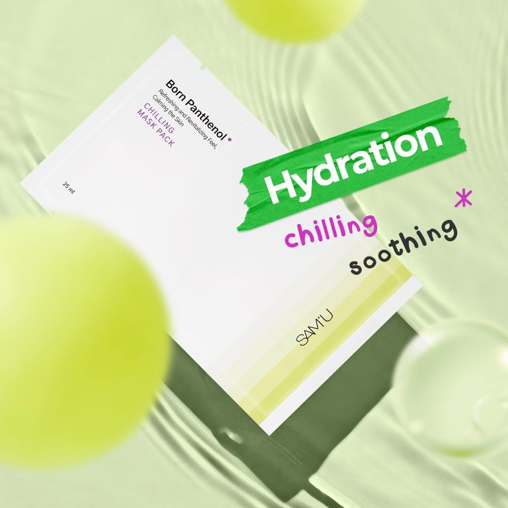 About this item Panthenol Comfort Care: Helps calm and moisturize while instantly soothing and cooling tired, irritated skin. Dermatologist-Tested for Sensitive Skin – Formulated without irritation, gentle enough for daily use. Vegan Sheet Mask – Eco-friendly, cruelty-free sheet made with plant-based fibers. Birch Sap & Xylitol Infused – Delivers a refreshing cooling effect while instantly soothing the skin. For All Skin Types: Gentle enough for dry, oily, or even breakout-prone skin SAM'U Born Panthenol : Designed to emphasize the refreshing synergy of panthenol and complementary ingredients, rather than just high concentration levels.  See more product details,Panthenol Comfort Care: Helps calm and moisturize while instantly soothing and cooling tired, irritated skin,Dermatologist-Tested for Sensitive Skin – Formulated without irritation, gentle enough for daily use,Vegan Sheet Mask – Eco-friendly, cruelty-free sheet made with plant-based fibers,Birch Sap & Xylitol Infused – Delivers a refreshing cooling effect while instantly soothing the skin,For All Skin Types: Gentle enough for dry, oily, or even breakout-prone skin,SAM'U Born Panthenol : Designed to emphasize the refreshing synergy of panthenol and complementary ingredients, rather than just high concentration levels