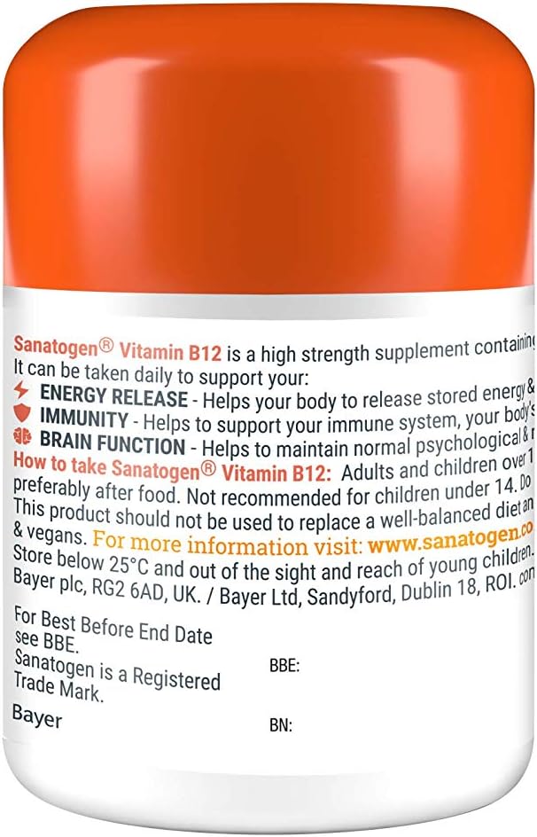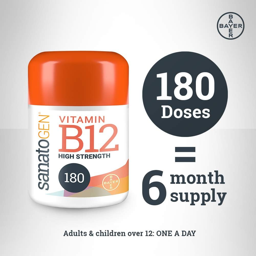 Sanatogen Vitamin B12 High Strength Tablets For Men And Women Suitable For Vegans & Vegetarians, 180 Tablets, 6 Months Supply, 67 G