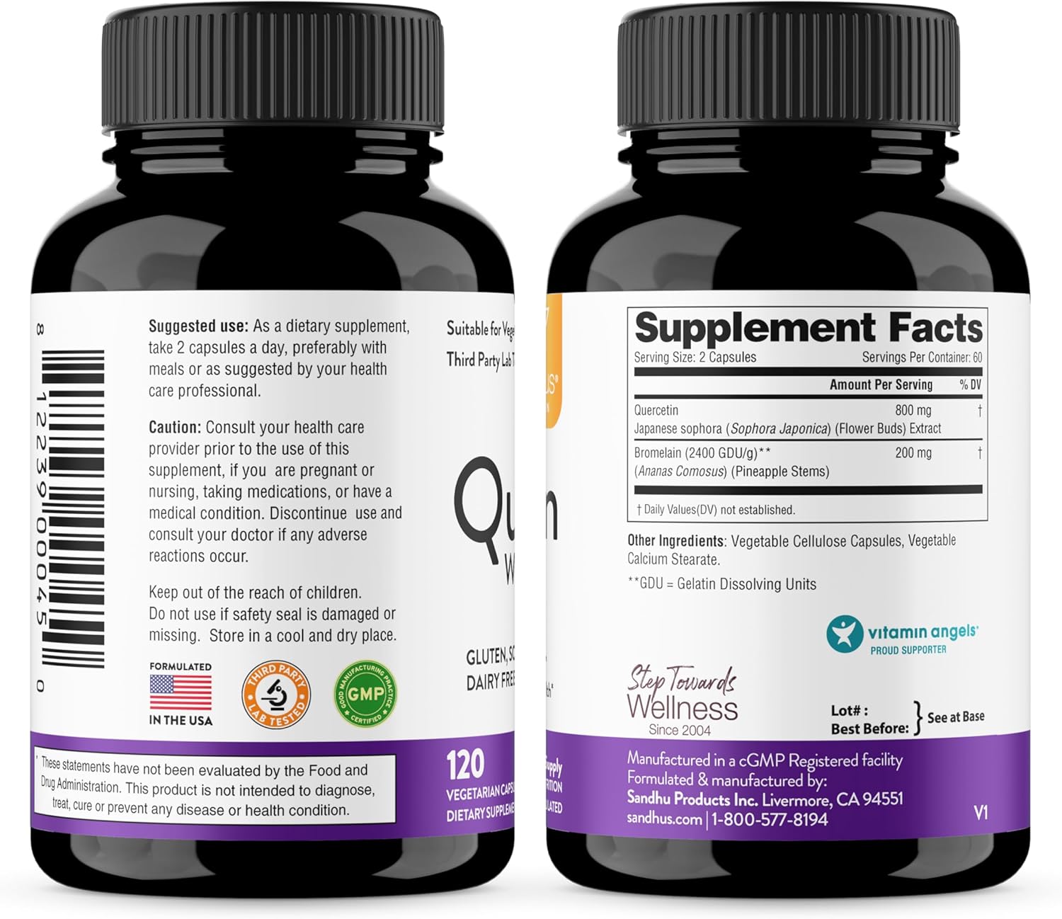 Sandhu'S Quercetin With Bromelain 1000Mg Per Serving 120 Count Vegetarian Capsules Bioflavonoids Supplement Complex Supports Immune, Cardiovascular & Respiratory Health
