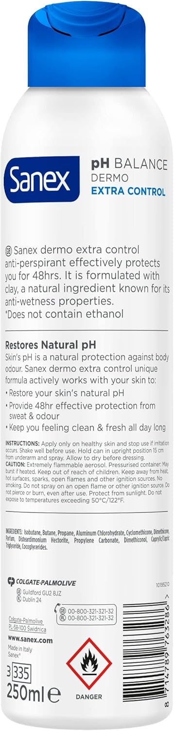 Sanex Dermo Extra Control Antiperspirant Deodorant Spray 250Ml, With Antibacterial Zinc Oxide, Up To 48-Hour Sweat And Odour Protection, Restores Skin’S Natural Ph, Dermatologically Tested