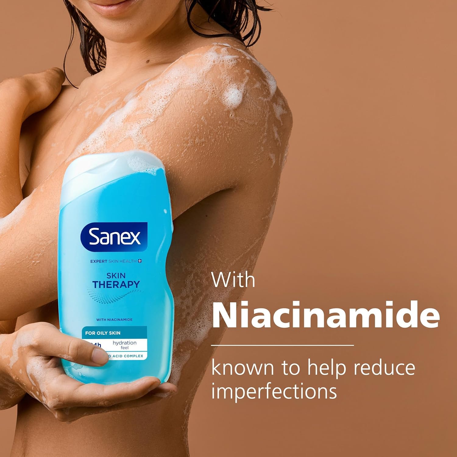 Sanex Skin Therapy Shower Gel 450Ml | Acne Body Wash That Helps Reduce Sebum | For Combination, Oily And Acne-Prone Skin | Amino Acid Complex With Niacinamide | Supports Skin’S Barrier