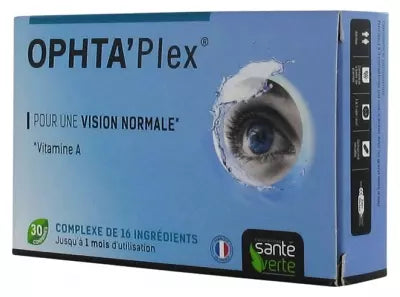 Santé Verte Ophta'Plex 30 Tablets Is A Food Supplement Based On Amino Acids, Vitamins, Plants And Substances With Nutritional And Physiological Purposes. This Food Supplement Combines Pigments, Trace Elements, Plant Extracts And Vitamins. The Intake In Vitamin C Helps Protect Cells From Oxidative Stress And Vitamin A To Maintain Normal Vision. Gluten Free