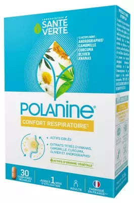 Santé Verte Polanine 30 Tablets Is A Food Supplement Formulated With A Complex Of 12 Ingredients Including: Andrographis Which Contributes To The Support Of The Respiratory Tract And The Maintenance Of Good Respiratory Comfort, Turmeric And Pepper Which Help Maintain The Health Of The Respiratory System, Lovage, Hyssop And Quercetin. Gluten Free. Made In France