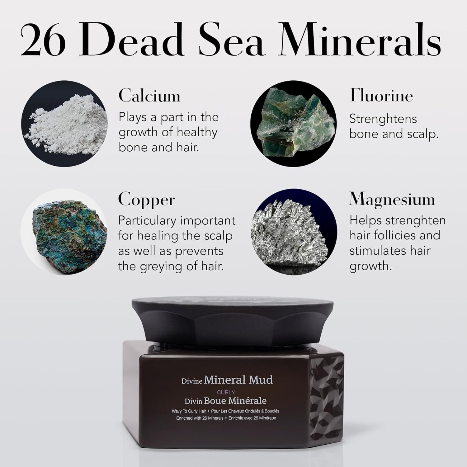 26 Active Healing Minerals: Our Divine Mineral Mud Hair Mask features 26 ultra-healing minerals from the Dead Sea which help hydrate, restore, style, and maintain curly to wavy hair; a small amount of product goes a long way