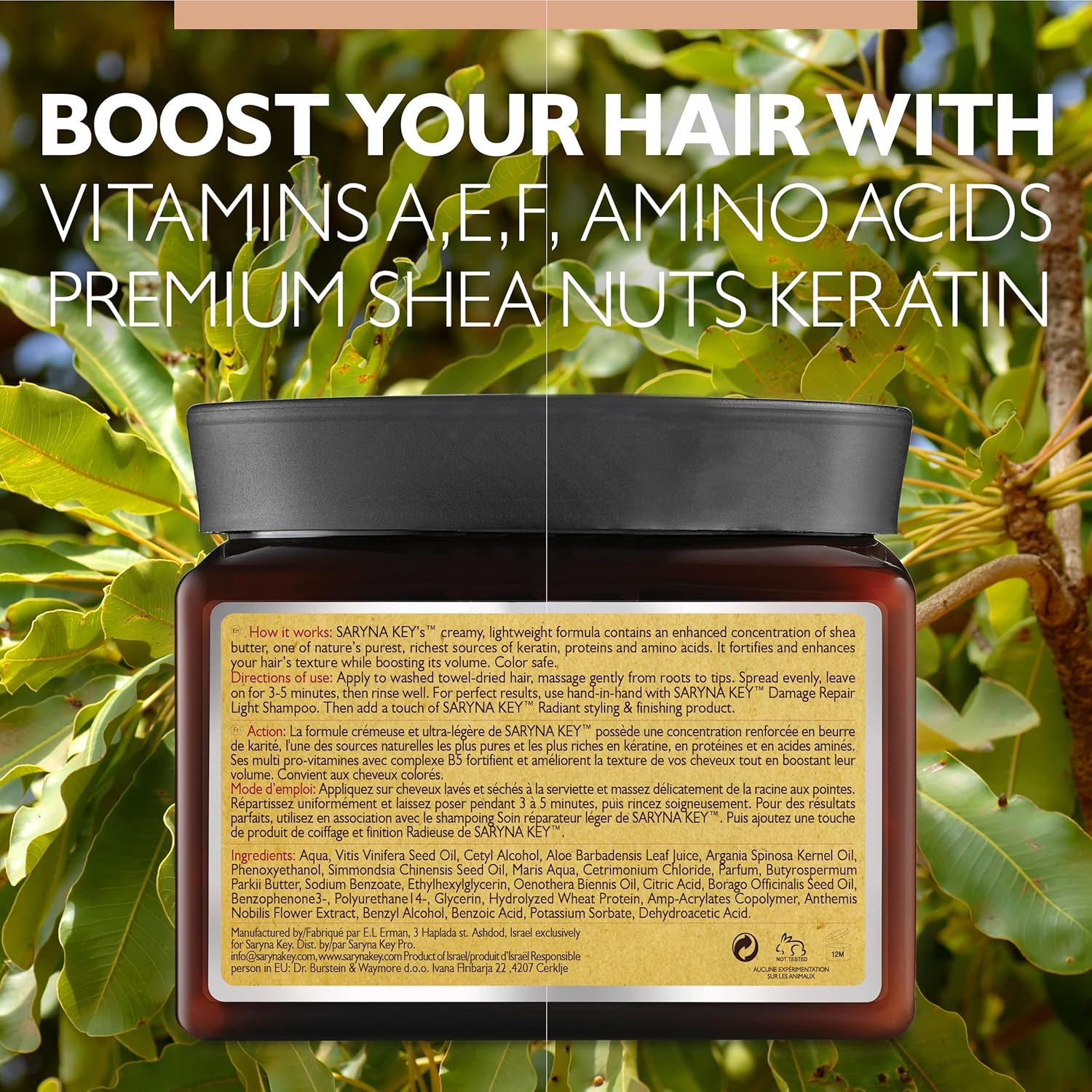 About this item SARYNA KEY PURE AFRICAN SHEA BUTTER: The damage repair shea butter is designed to treat, restore and repair dry/damaged hair. The damage repair shea butter is an advanced formula designed to repair, treat and rejuvenate your hair. NATURAL MOISTURIZER: All natural African shea butter is the best moisturizer for hair. This unique combination will restore the interior of the hair shaft. Amino acids build the proteins necessary to repair and replenish dry/damaged hair. PURE SHEA BUTTER: It has high concentrations of shea butter that naturally contains vitamins A, E and F, amino acids and keratin. This treatment’s natural keratin will help to create soft, shiny hair while amino acids build the proteins needed to repair the damage. RAW SHEA BUTTER: Treat your skin with the finest raw shea butter. Pure organic African shea butter is packed with skin-healthy vitamins that will give your skin a natural glow. DIRECTION FOR USE: After shampooing, massage into hair, paying extra attention to ends. Leave in for 2-5 minutes and rinse thoroughly. Best used when paired with saryna key damage repair treatment shampoo. See more product details,SARYNA KEY PURE AFRICAN SHEA BUTTER: The damage repair shea butter is designed to treat, restore and repair dry/damaged hair. The damage repair shea butter is an advanced formula designed to repair, treat and rejuvenate your hair,NATURAL MOISTURIZER: All natural African shea butter is the best moisturizer for hair. This unique combination will restore the interior of the hair shaft. Amino acids build the proteins necessary to repair and replenish dry/damaged hair,PURE SHEA BUTTER: It has high concentrations of shea butter that naturally contains vitamins A, E and F, amino acids and keratin. This treatment’s natural keratin will help to create soft, shiny hair while amino acids build the proteins needed to repair the damage,RAW SHEA BUTTER: Treat your skin with the finest raw shea butter. Pure organic African shea butter is packed with skin-healthy vitamins that will give your skin a natural glow,DIRECTION FOR USE: After shampooing, massage into hair, paying extra attention to ends. Leave in for 2-5 minutes and rinse thoroughly. Best used when paired with saryna key damage repair treatment shampoo
