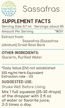 Sassafras B120 Alcohol-Free Herbal Extract Tincture, Concentrated Liquid Drops Natural Sassafras (Sassafras Albidum) Dried Root Bark (4 Fl Oz)