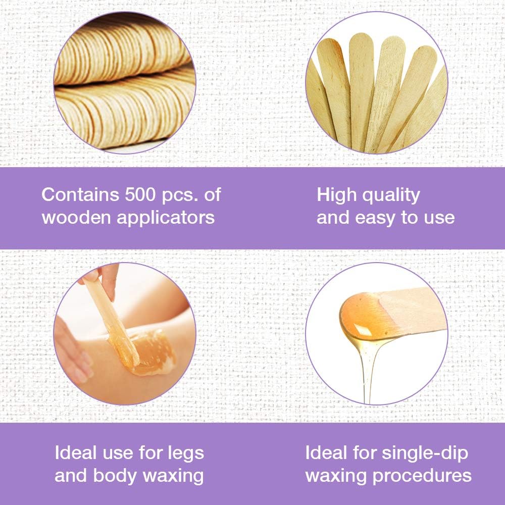 About this item WAX’S PERFECT PARTNER FOR FULL BODY WAXING: Satin Smooth Large Applicators are disposable, sanitary hair removal sticks for use with our high-quality waxes. Designed to use on large parts of the body, removing unwanted hairs on arms, armpit, legs, chest, and back! These treatment applicators are the top choice of the seasoned professional, as well as the beginners for seamless waxing experience every time. Definitely, your wax’s perfect partner for a much smoother, silkier and hair-free body! LIGHTWEIGHT, CONVENIENT WAX’S PERFECT PARTNER: Satin Smooth Large Applicators are lightweight and bendable making it easy to do a detailed full body waxing and hair removal on delicate areas - perfect for bikini waxing, too! It has wider, angled edges for an even and controlled wax application every time. Great value as this allows you to spread the wax in a thin layer, and still grabs the hair from the root, making you save more money with just a little amount of your hair removal hard/soft wax HIGH-QUALITY WAX APPLICATOR STICKS: Made of fine quality wood, flattened and smoothened to ensure no rough edges or splinters will ever touch your skin. Satin Smooth Large Applicators are sturdy and do not break easily, unlike other waxing sticks. Hygienically packed and sealed in plastic - great for single-dip waxing procedures. A must-have for hair waxing pros for salon use, regular users and beginners who like to try DIY waxing at home. Perfect wax partner for your waxing needs! EASY TO USE LARGE WAXING APPLICATOR: Smoother, hairless skin is achievable even at home. Unlike metal spatulas, Satin Smooth Large Applicators reduce cases of minor burns and scalds when waxing. Just melt the wax, dip the applicator stick to get enough amount, apply it to the desired area of the face or body, let the wax cool and pull off - easy-peasy! Be confidently beautiful by having that smoother and lovely hair-free skin for weeks. Save time and money from your expensive spa visits! 500 PCS WAXING APPLICATORS IN A PACK: Never run out of your wax’s perfect partner! This pack comes with 500 counts of Satin Smooth Large Applicators. With its large quantity, it will allow you to use it for a long time without having to repurchase them so often! Get waxing sticks that will satisfy your hair waxing needs! Be confidently beautiful by having that smoother and lovely hair-free skin for weeks. You can save time and money from your expensive spa visits! See more product details,WAX’S PERFECT PARTNER FOR FULL BODY WAXING: Satin Smooth Large Applicators are disposable, sanitary hair removal sticks for use with our high-quality waxes. Designed to use on large parts of the body, removing unwanted hairs on arms, armpit, legs, chest, and back! These treatment applicators are the top choice of the seasoned professional, as well as the beginners for seamless waxing experience every time. Definitely, your wax’s perfect partner for a much smoother, silkier and hair-free body!,LIGHTWEIGHT, CONVENIENT WAX’S PERFECT PARTNER: Satin Smooth Large Applicators are lightweight and bendable making it easy to do a detailed full body waxing and hair removal on delicate areas - perfect for bikini waxing, too! It has wider, angled edges for an even and controlled wax application every time. Great value as this allows you to spread the wax in a thin layer, and still grabs the hair from the root, making you save more money with just a little amount of your hair removal hard/soft wax,HIGH-QUALITY WAX APPLICATOR STICKS: Made of fine quality wood, flattened and smoothened to ensure no rough edges or splinters will ever touch your skin. Satin Smooth Large Applicators are sturdy and do not break easily, unlike other waxing sticks. Hygienically packed and sealed in plastic - great for single-dip waxing procedures. A must-have for hair waxing pros for salon use, regular users and beginners who like to try DIY waxing at home. Perfect wax partner for your waxing needs!,EASY TO USE LARGE WAXING APPLICATOR: Smoother, hairless skin is achievable even at home. Unlike metal spatulas, Satin Smooth Large Applicators reduce cases of minor burns and scalds when waxing. Just melt the wax, dip the applicator stick to get enough amount, apply it to the desired area of the face or body, let the wax cool and pull off - easy-peasy! Be confidently beautiful by having that smoother and lovely hair-free skin for weeks. Save time and money from your expensive spa visits!,500 PCS WAXING APPLICATORS IN A PACK: Never run out of your wax’s perfect partner! This pack comes with 500 counts of Satin Smooth Large Applicators. With its large quantity, it will allow you to use it for a long time without having to repurchase them so often! Get waxing sticks that will satisfy your hair waxing needs! Be confidently beautiful by having that smoother and lovely hair-free skin for weeks. You can save time and money from your expensive spa visits!