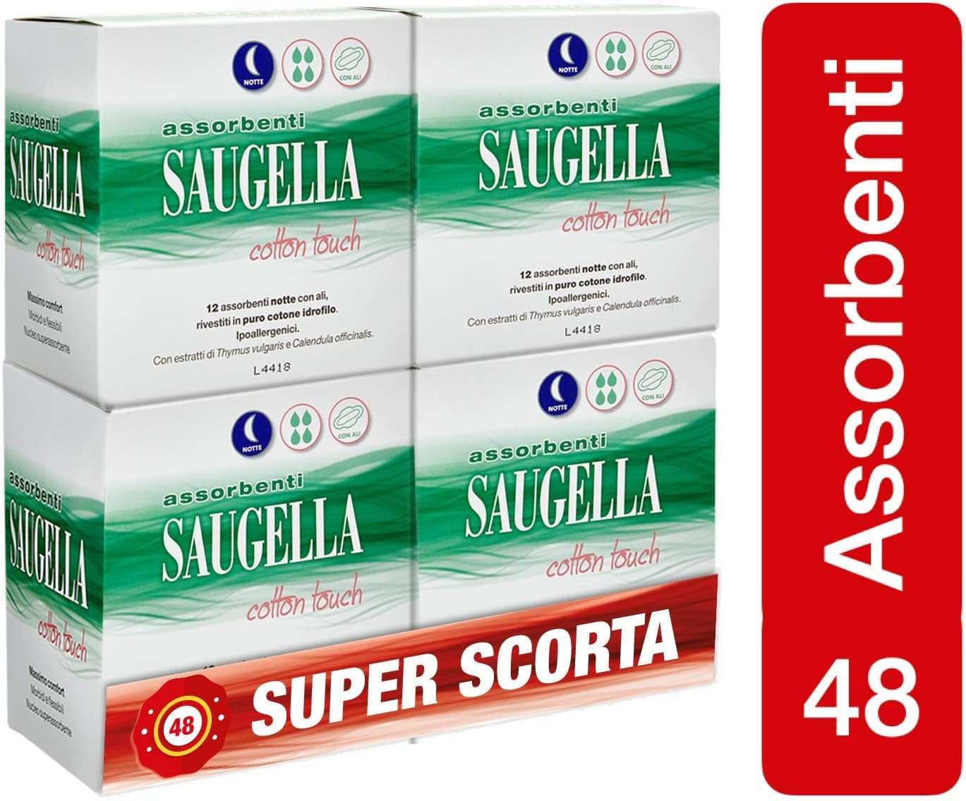 Saugella Cotton Touch Active Night Absorbent With Hypoallergenic Cotton Wings 48 Pieces - 80G
