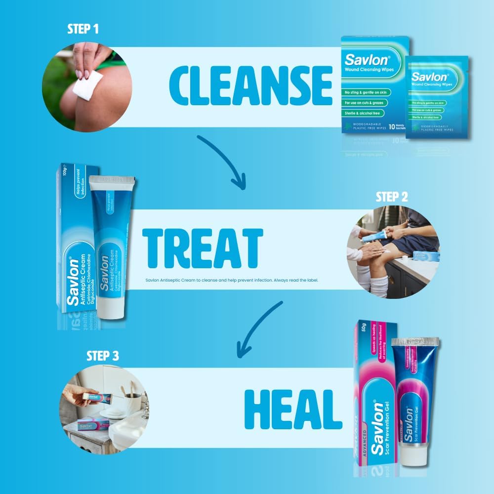 Savlon Wound Cleansing Wipes And Savlon Cream Bundle - First Aid For Minor Cuts & Wounds, Helps Prevent Infection