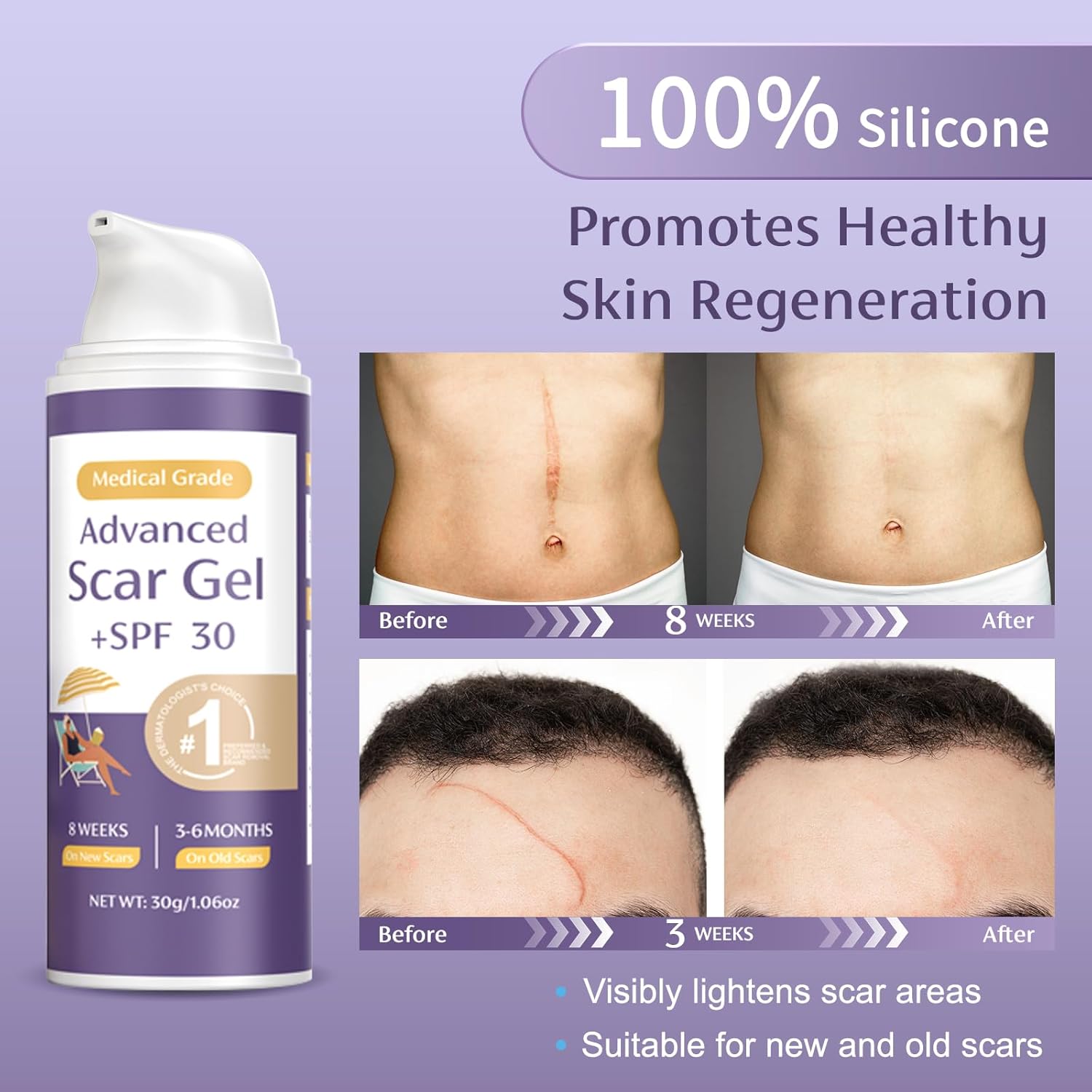 About this item Scar Cream with SPF 30 This silicone scar gel contains 100% medical-grade silicone, which helps reduce the appearance of stretch marks, surgery scars, burns, injuries, acne, keloids, and more. It also moisturizes scar tissue, resulting in smoother, more radiant skin Suitable for Daytime This hydrating moisturizer features broad spectrum SPF 30 sunscreen. Perfect for daily sun care, whether you're at the beach or out for a walk, our scar cream for surgical scars, both old and new scars from harmful UV rays while reducing redness Easy to Use Our scar removal cream features a lightweight, non-greasy texture that quickly absorbs into the skin. It's designed to lock in moisture, promote collagen production, and rejuvenate skin cells while relieving discomfort and itching associated with scars Safe, Scentless, Non-Toxic, Non-Irritating Our sunscreen-infused best scar treatment gel is free from parabens, fragrances, and preservatives. Formulated to be safe, odorless, and non-toxic, it is suitable for all skin types, including sensitive skin Keep Applying & Noticeable Results This scar fade cream is effective on both newly healed wounds and visible old scars. For optimal results, apply the silicone cream for scars twice daily. Treatment cycles vary from person to person, and individual results will differ See more product details,Scar Cream with SPF 30 This silicone scar gel contains 100% medical-grade silicone, which helps reduce the appearance of stretch marks, surgery scars, burns, injuries, acne, keloids, and more. It also moisturizes scar tissue, resulting in smoother, more radiant skin,Suitable for Daytime This hydrating moisturizer features broad spectrum SPF 30 sunscreen. Perfect for daily sun care, whether you're at the beach or out for a walk, our scar cream for surgical scars, both old and new scars from harmful UV rays while reducing redness,Easy to Use Our scar removal cream features a lightweight, non-greasy texture that quickly absorbs into the skin. It's designed to lock in moisture, promote collagen production, and rejuvenate skin cells while relieving discomfort and itching associated with scars,Safe, Scentless, Non-Toxic, Non-Irritating Our sunscreen-infused best scar treatment gel is free from parabens, fragrances, and preservatives. Formulated to be safe, odorless, and non-toxic, it is suitable for all skin types, including sensitive skin,Keep Applying & Noticeable Results This scar fade cream is effective on both newly healed wounds and visible old scars. For optimal results, apply the silicone cream for scars twice daily. Treatment cycles vary from person to person, and individual results will differ