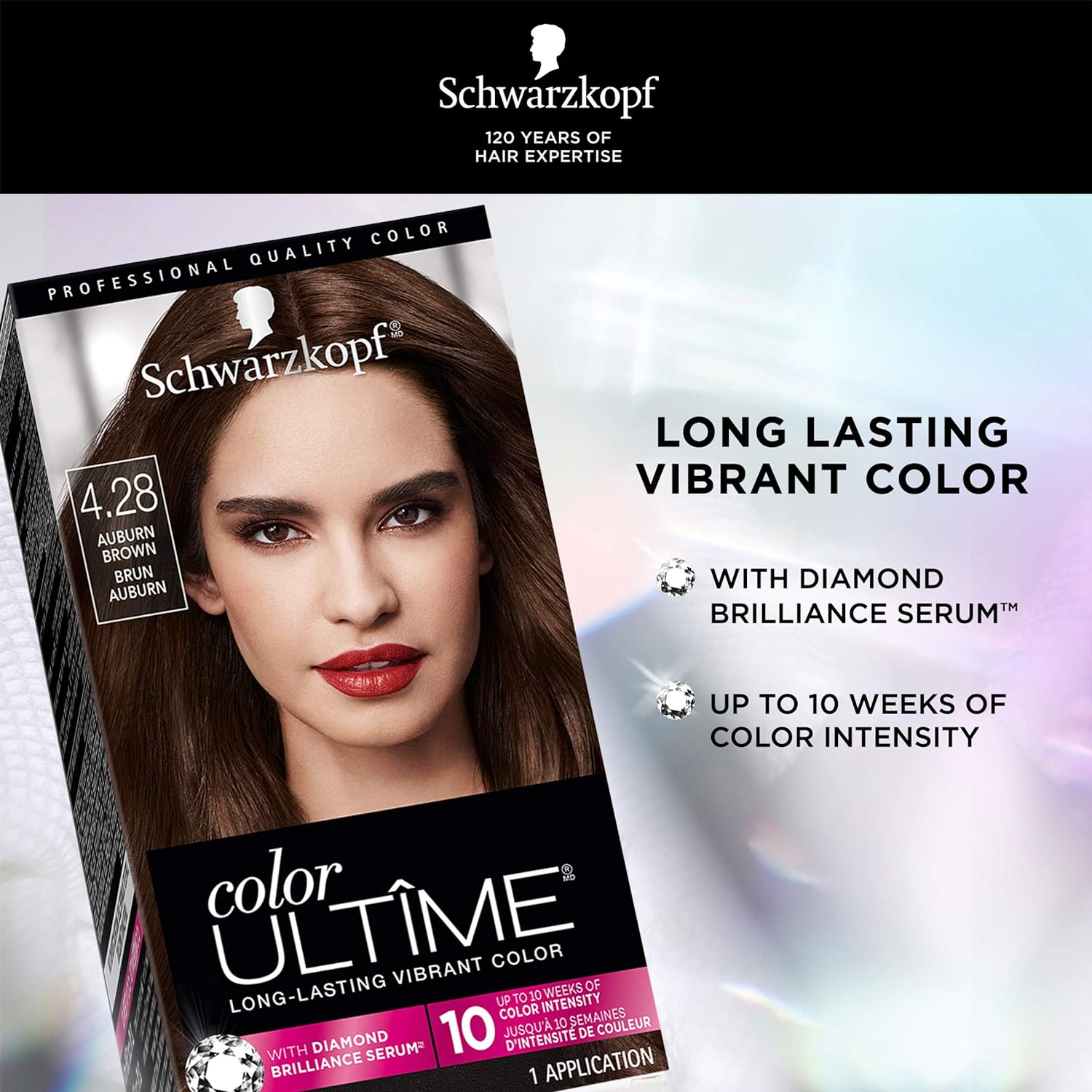 Schwarzkopf Color ultime permanent hair color creme, glam nights, 4.28 auburn brown