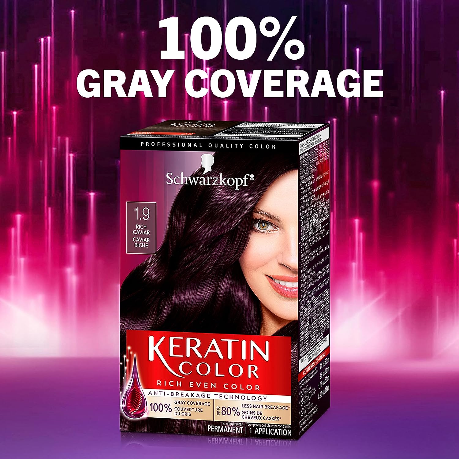 Schwarzkopf Keratin Color Permanent Hair Color Cream, 1.9 Rich Caviar