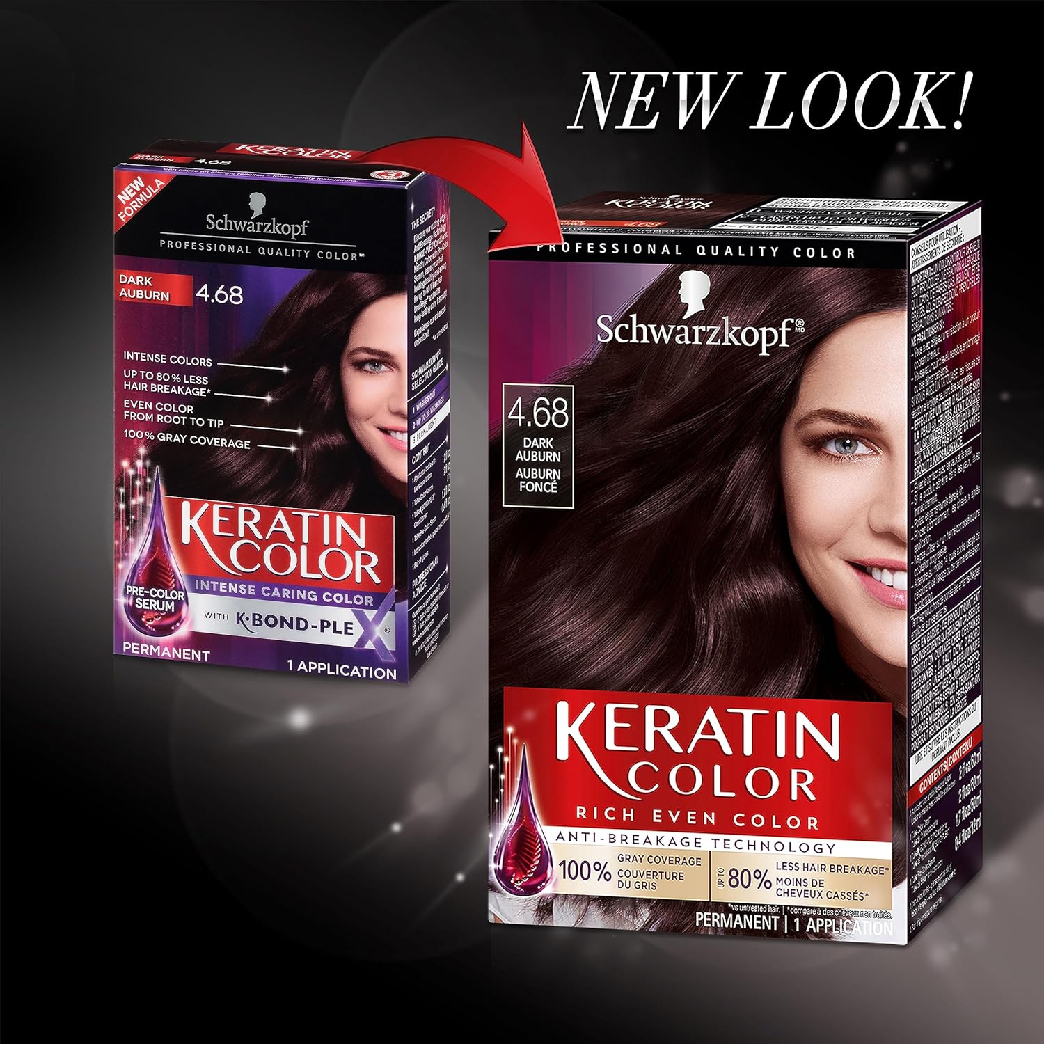 Schwarzkopf Keratin Color Permanent Hair Color Cream, 4.68 Dark Auburn, 1 Kit