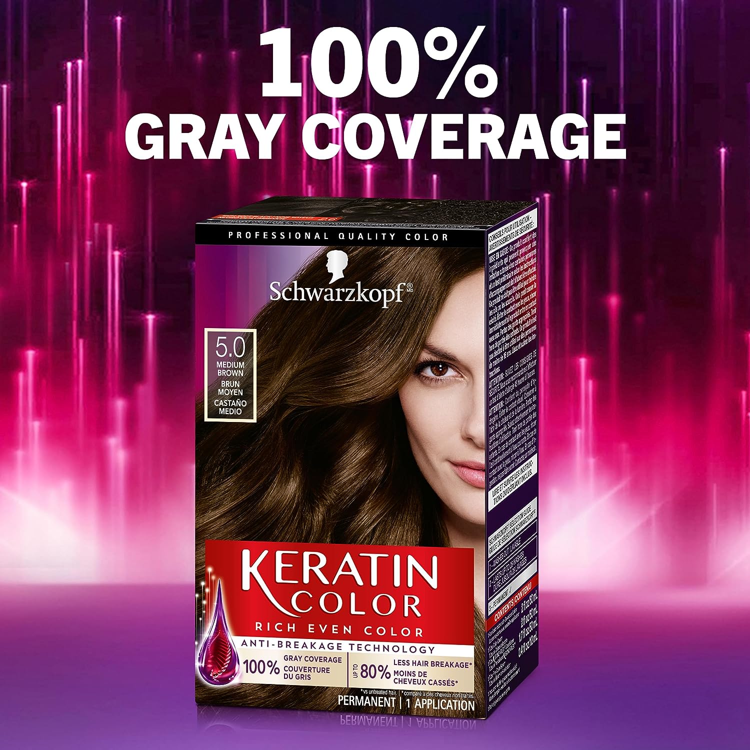 Schwarzkopf Keratin color permanent hair color cream, 5.0 medium brown