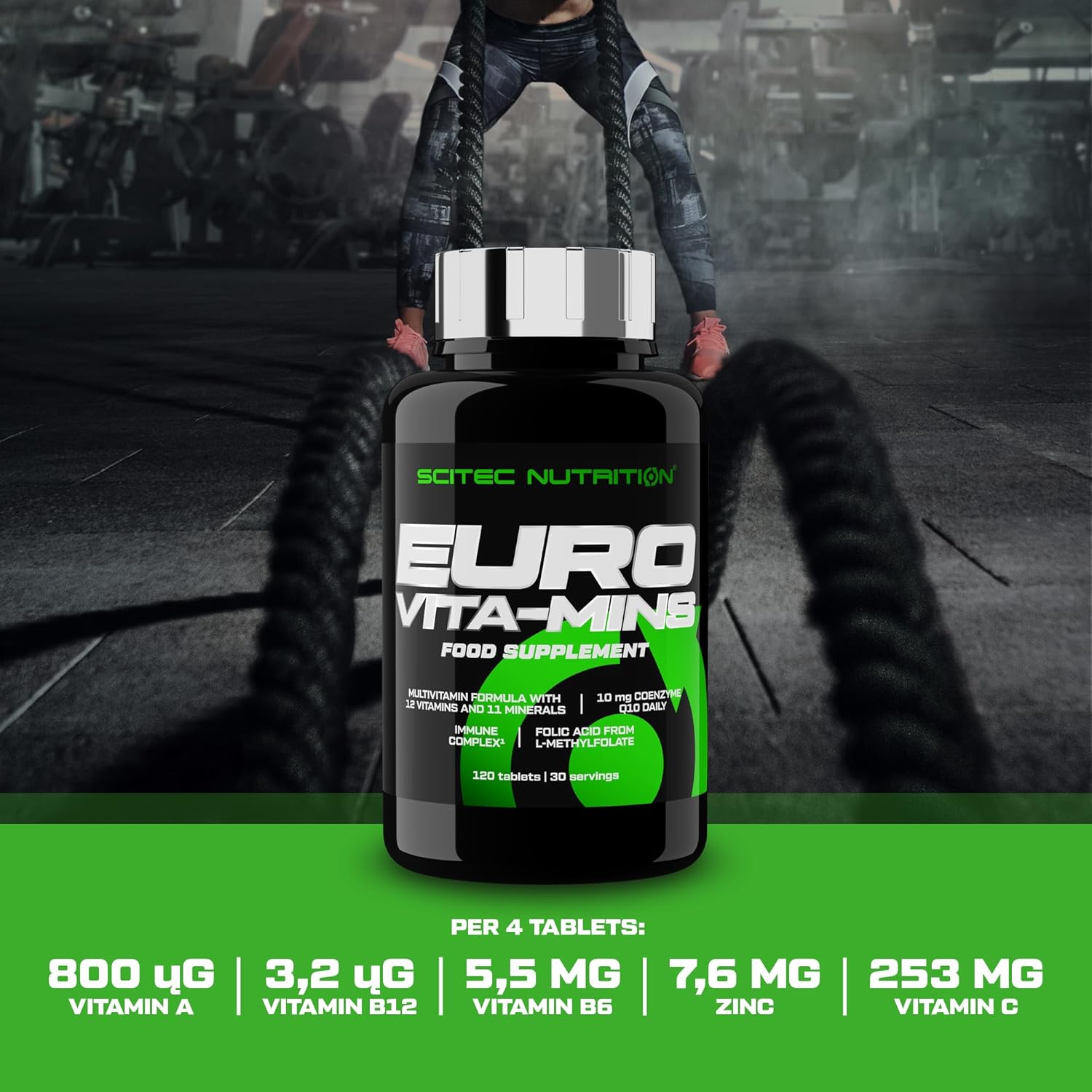 Scitec Nutrition Euro Vita-Mins, High-Potency Multivitamin & Mineral Formula With Vitamin C, B2, Zinc, Selenium & Coq10, Boosts Immunity, Energy & Vital, 120 Tablets