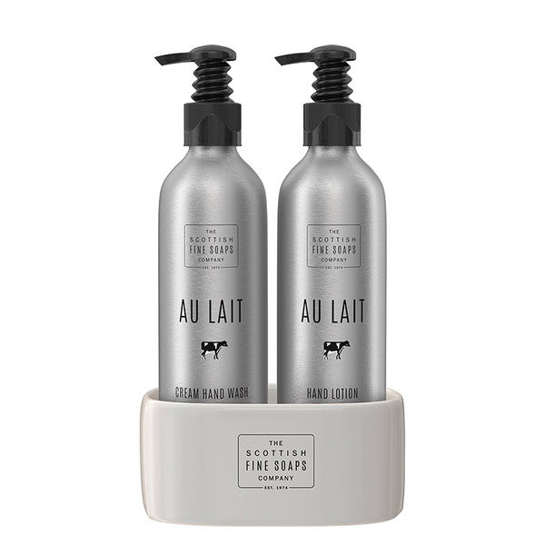 Product Information:Take Care Of Your Hands With This Luxurious Scottish Fine Soaps Au Lait Duo,Features:A Creamy, Lightweight Wash Which Will Leave Your Hands Silky-Soft And Feeling Fresh, The Scottish Fine Soaps Au Lait Cream Hand Wash Comes In A Handy Pump Bottle Making It Easy To Apply,Product Specification:Hand Wash: Aqua (Water), Sodium Laureth Sulfate, Sodium Chloride, Cocamidopropyl Betaine, Glycol Cetearate, Parfum (Fragrance), Aloe Barbadensis Leaf Juice, Styrene/Acrylates Copolymer, Lac (Non Fat Dry Milk), Disodium Edta, Magnesium Nitrate, Methylchloroisothiazolinone, Magnesium Chloride, Methylisothiazolinone, Alpha-Isomethyl Ionone, Coumarin.Hand Lotion: Aqua (Water), Glycerin, Paranum Liquidum (Mineral Oil), Prunus Amygdalus Dulcis (Sweet Almond) Oil, Cetearyl Alcohol, Stearic Acid, Phenoxyethanol, Parfum (Fragrance), Glyceryl Stearate, Peg-20 Stearate, Lac (Non Fat Dry Milk), Aminomethyl Propanol, Disodium Edta, Ethylhexylglycerin, Carbomer, Alpha-Isomethyl Ionone, Coumarin