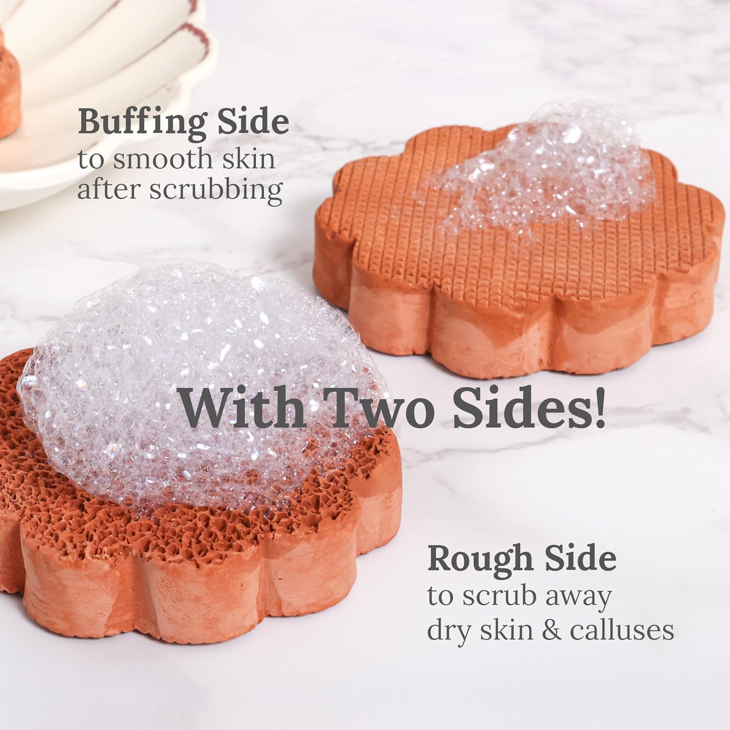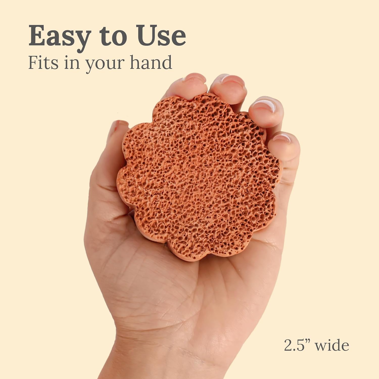 Scrubbies Pumice Stone For Feet Lasts 5+ Years Foot Exfoliator Scrubber Callus Remover Made Of Natural Terra-Cotta (Flower)
