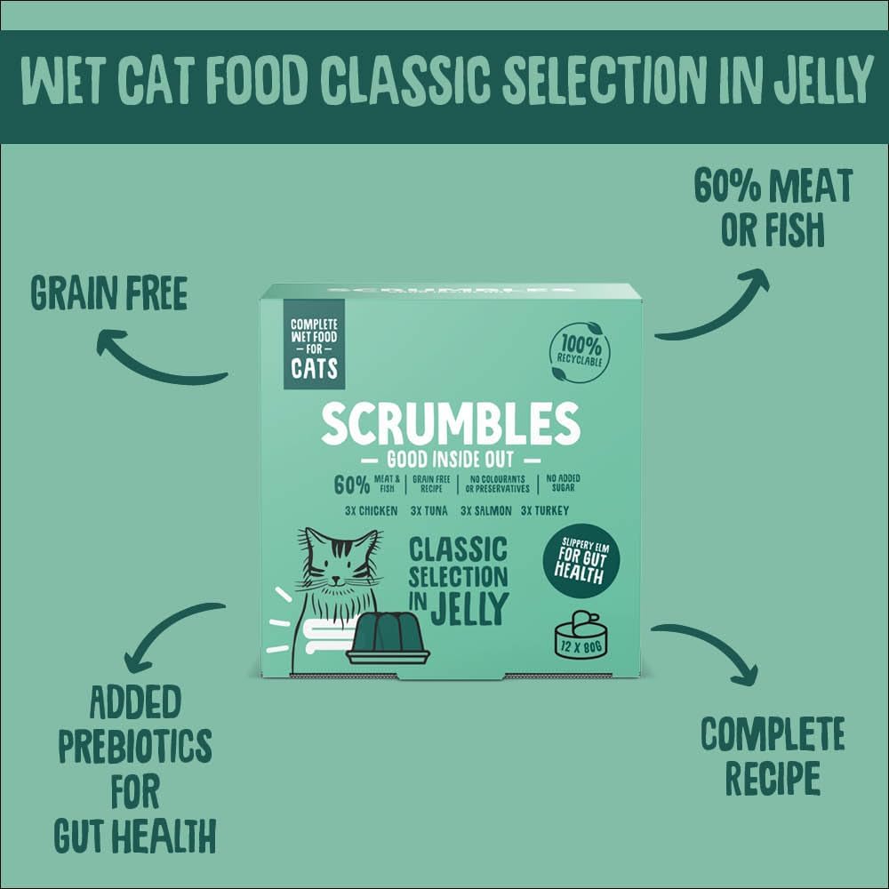 Scrumbles Natural Wet Cat Food, Classic Selection In Jelly 12X 80G