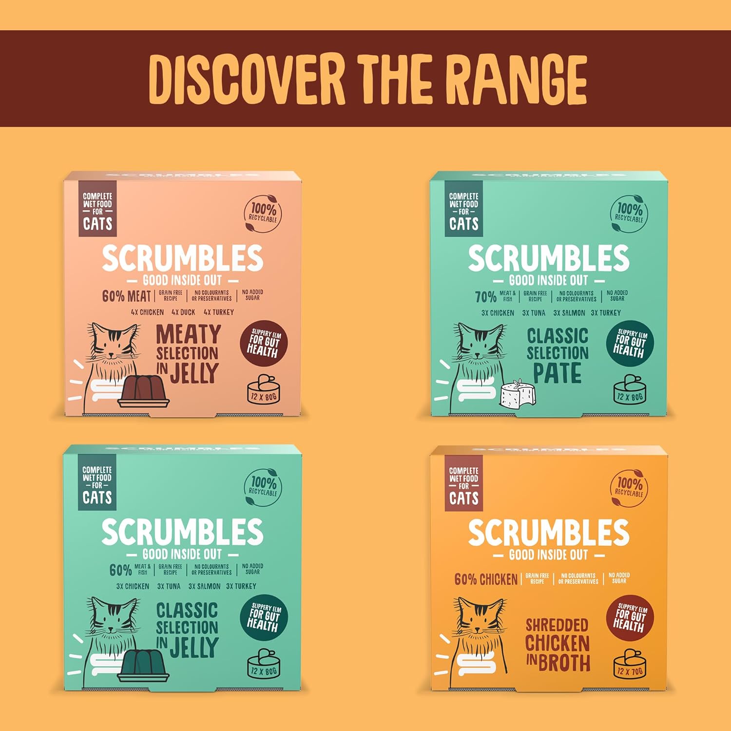 Scrumbles Natural Wet Cat Food, Shredded Chicken In Broth 12X 70G